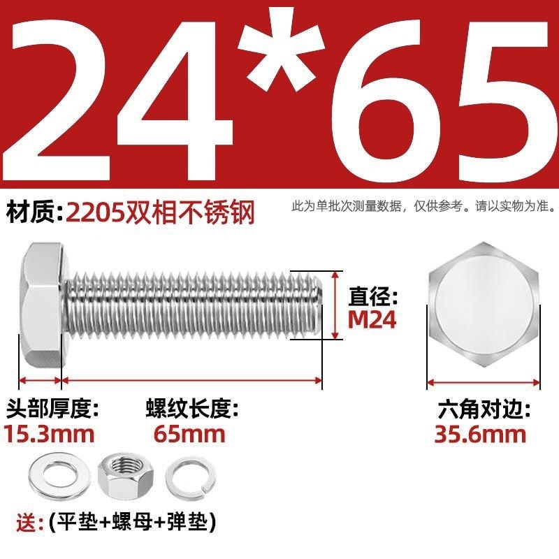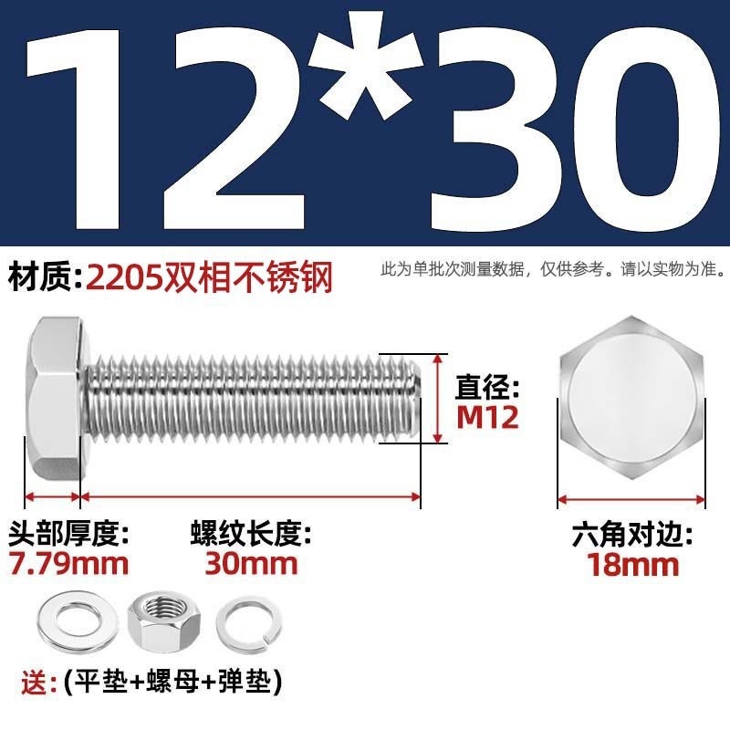 2205 듀플렉스 스테인레스 스틸 8.8 등급 고강도 외부 육각 볼트 스크류 너트 세트 스크류 MM6M8-M24스토어 가기
