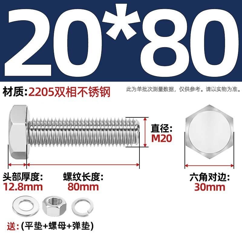 2205 듀플렉스 스테인레스 스틸 8.8 등급 고강도 외부 육각 볼트 스크류 너트 세트 스크류 MM6M8-M24
