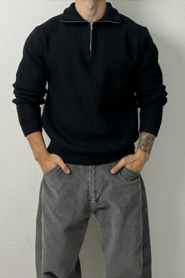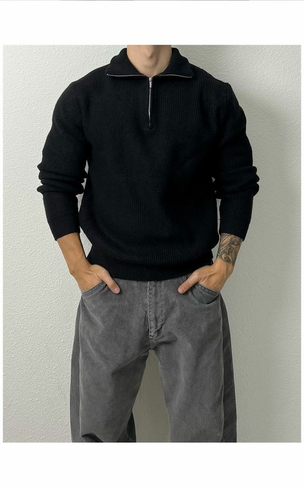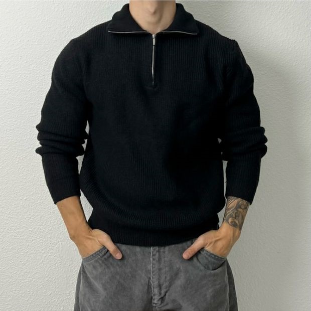 • 세미 하이 지퍼 스웨터 네이비 블루