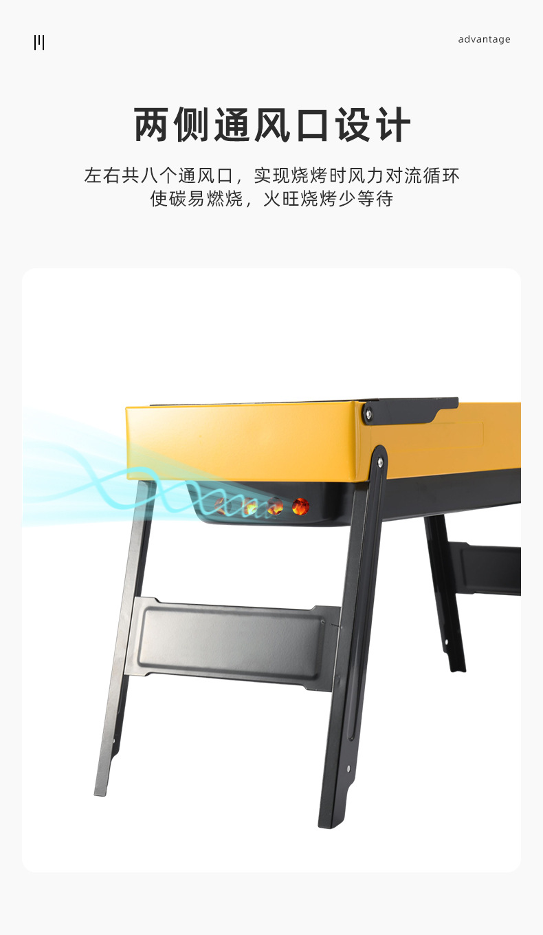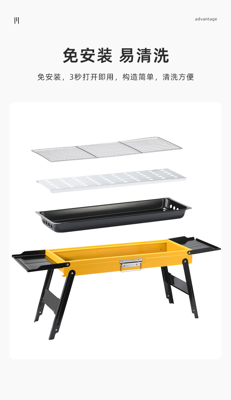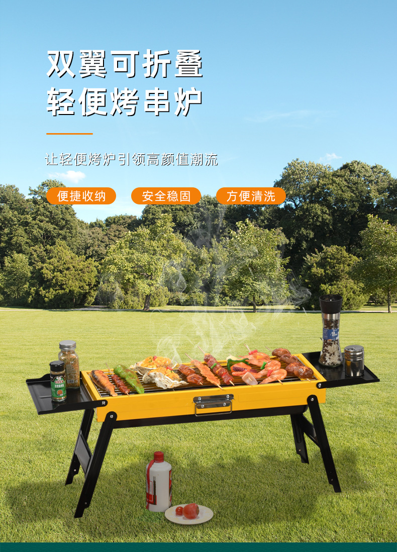 1户外野营旅行BBQ木炭烧烤炉具家用便捷可折叠加厚烧烤架户外烤架