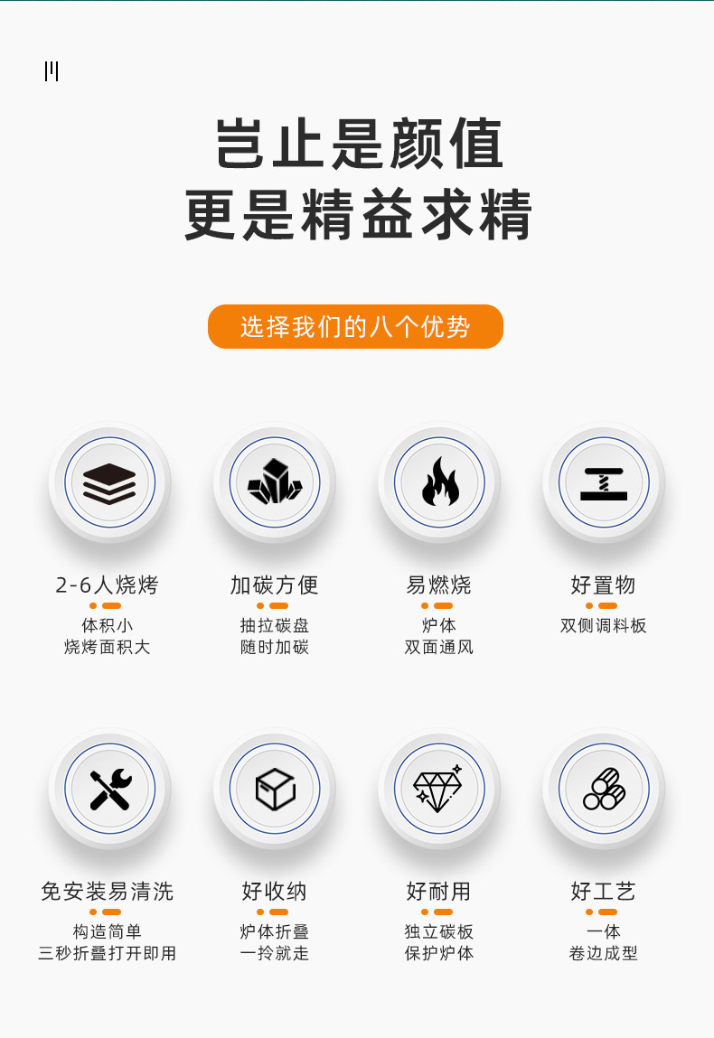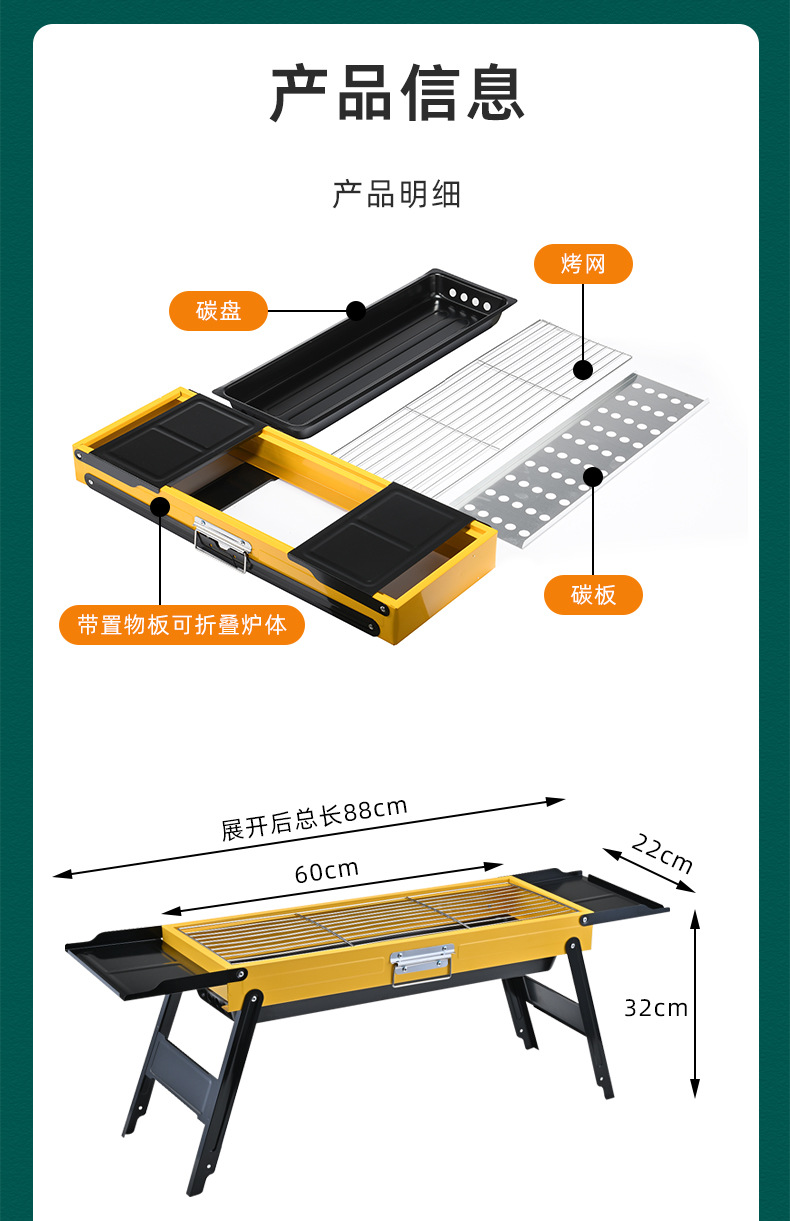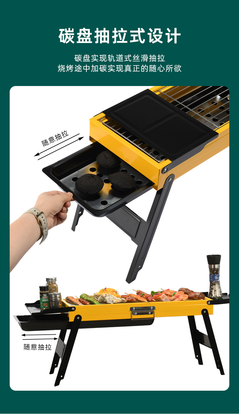 可抽拉炭盘烧烤炉可折叠便携小型烧烤架户外露营烧烤架户外烤架