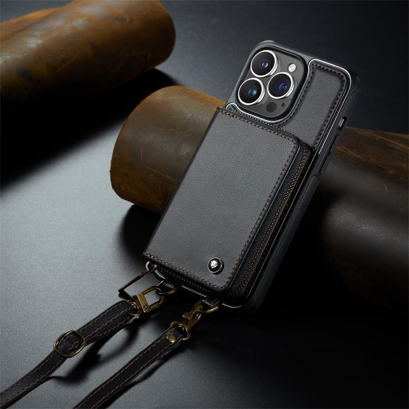 适用苹果16promax手机壳支架挂绳钱包iphone13ProMax插卡零钱卡包