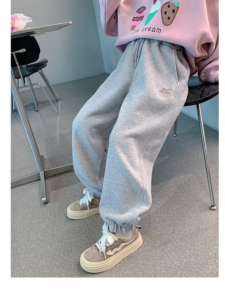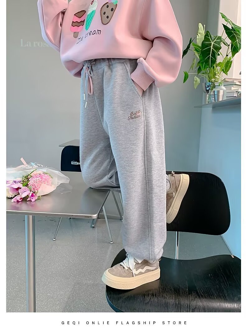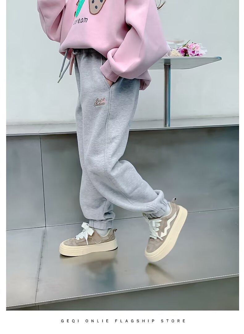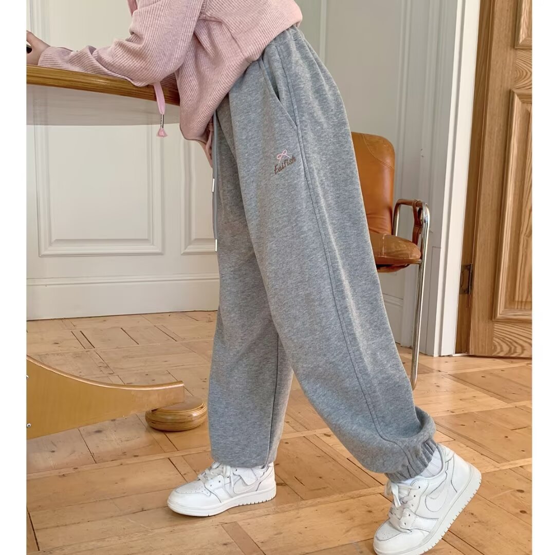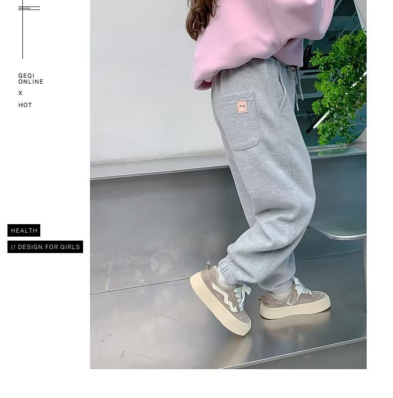 회색 스포츠 바지 소녀 봄과 가을 2024 새로운 어린이 바나나 바지 소녀 넓은 다리 바지 소녀 마체테 바지스토어 가기