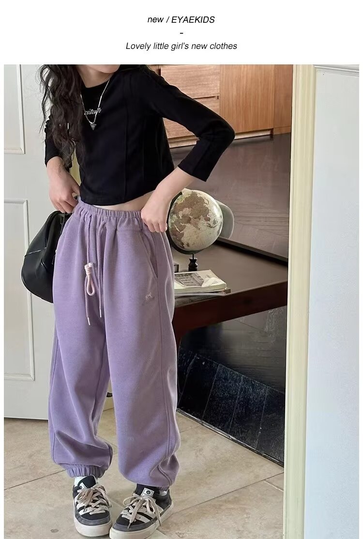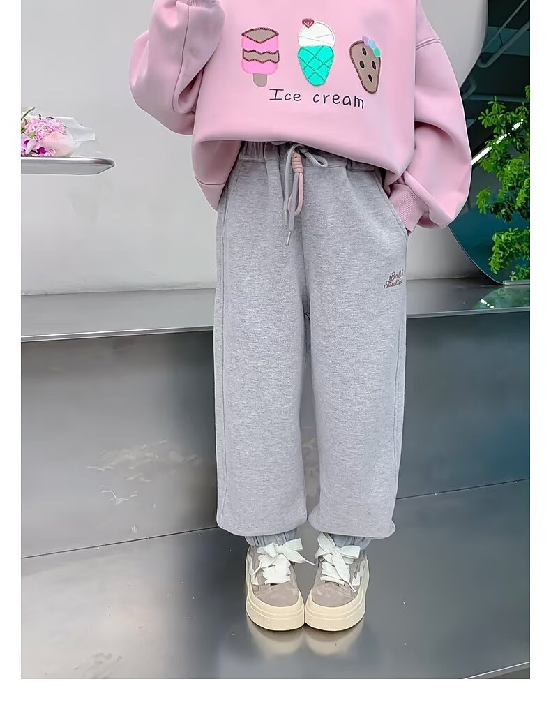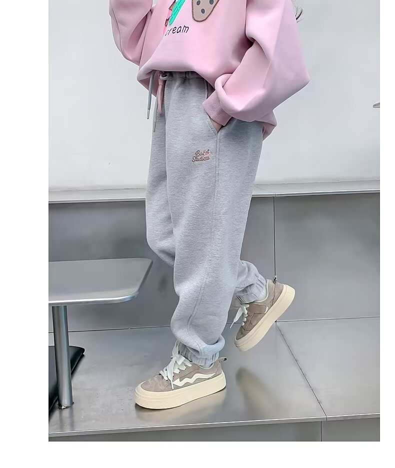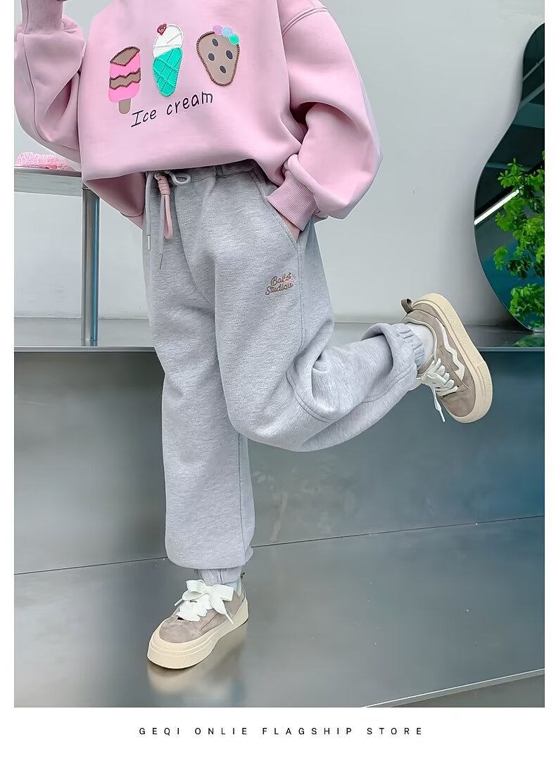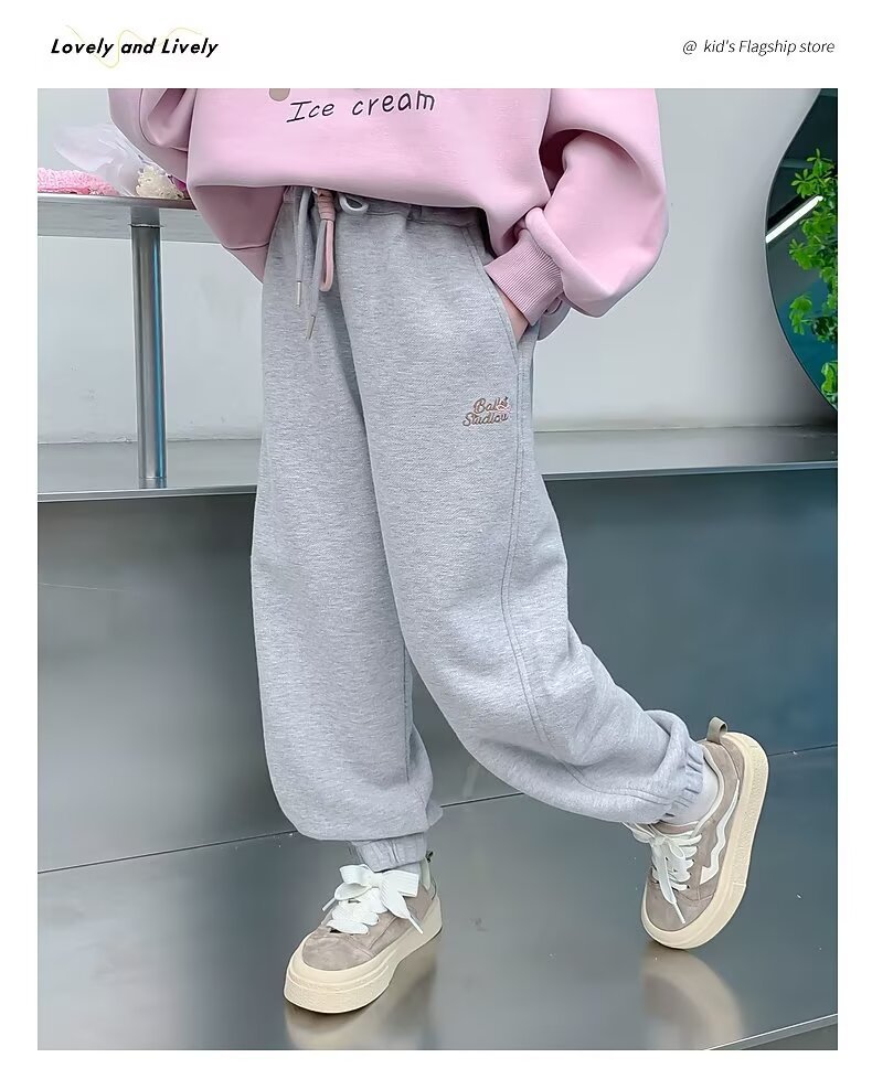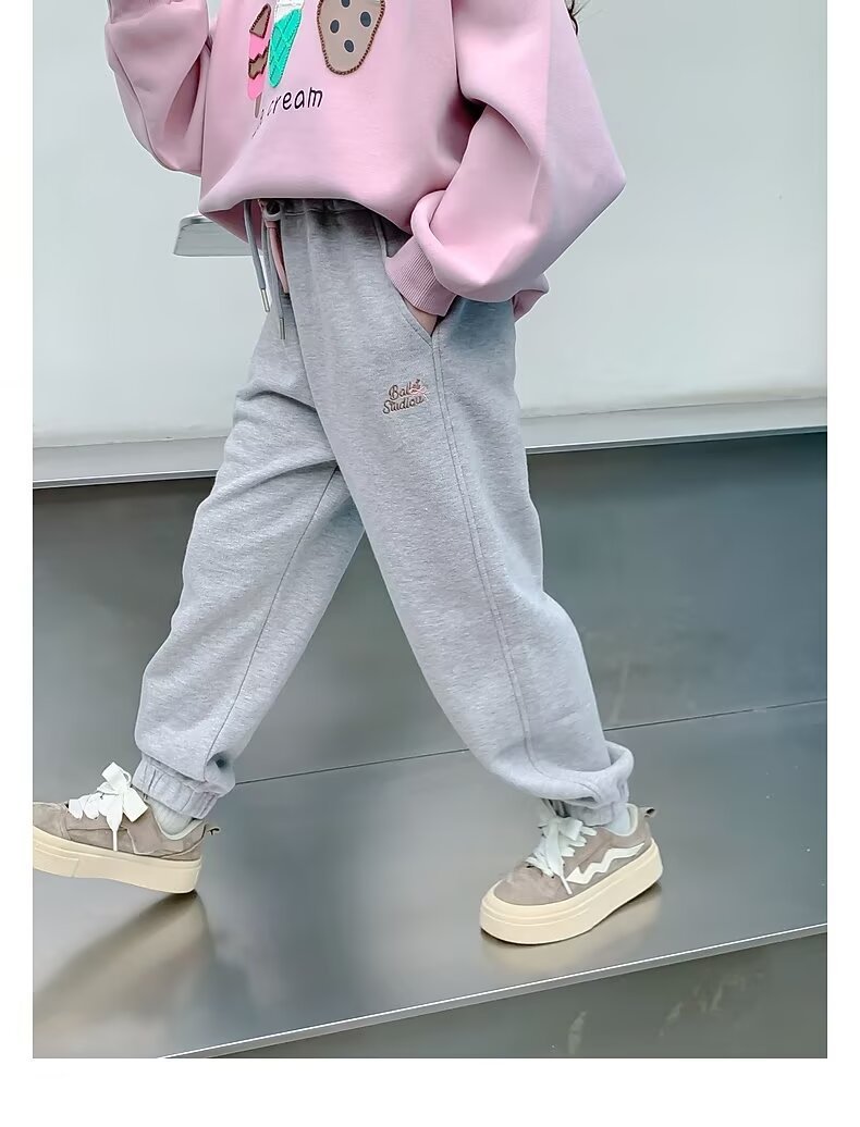 회색 스포츠 바지 소녀 봄과 가을 2024 새로운 어린이 바나나 바지 소녀 넓은 다리 바지 소녀 마체테 바지스토어 가기