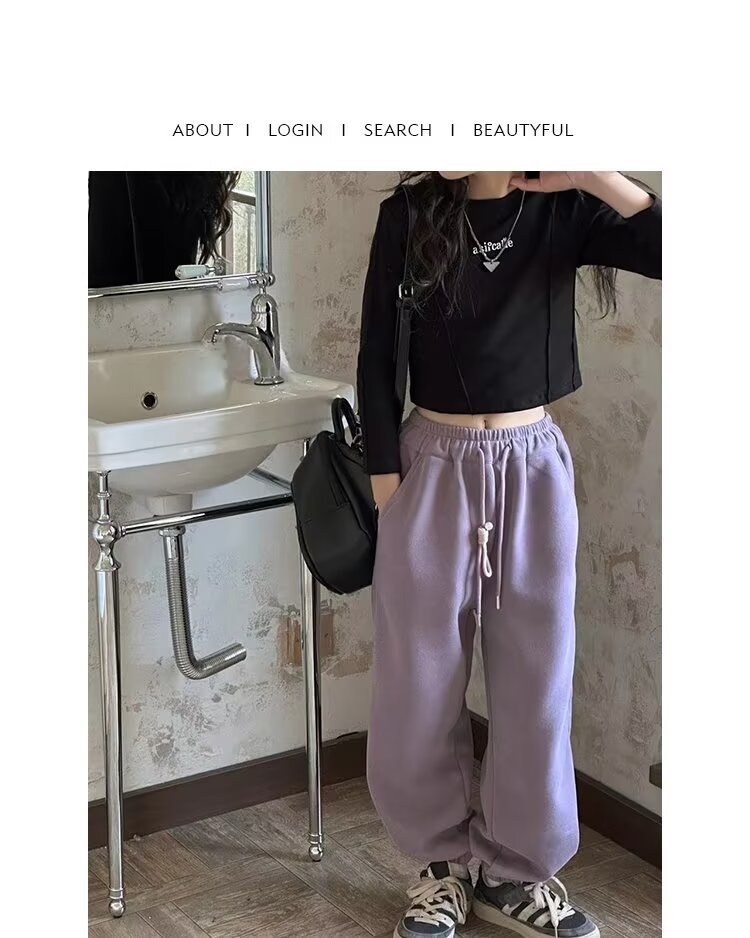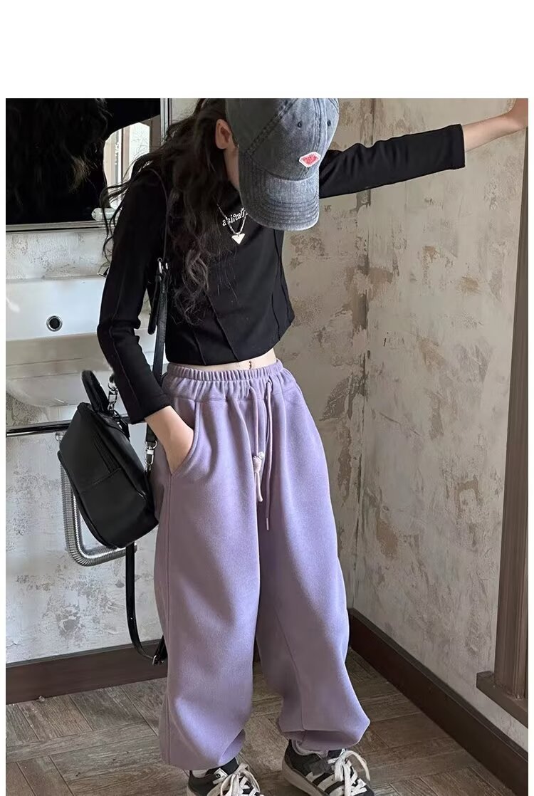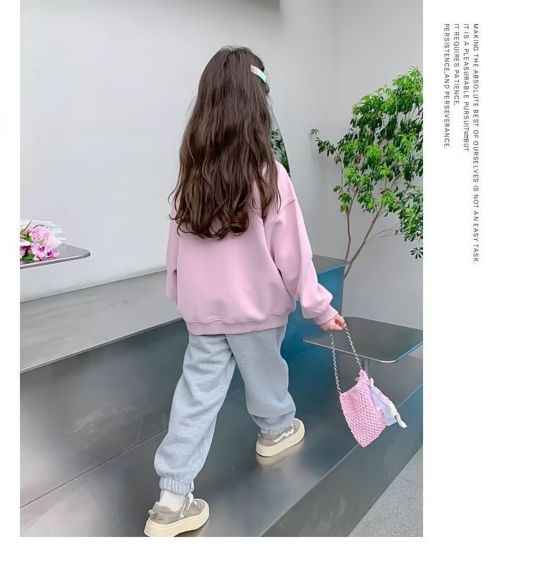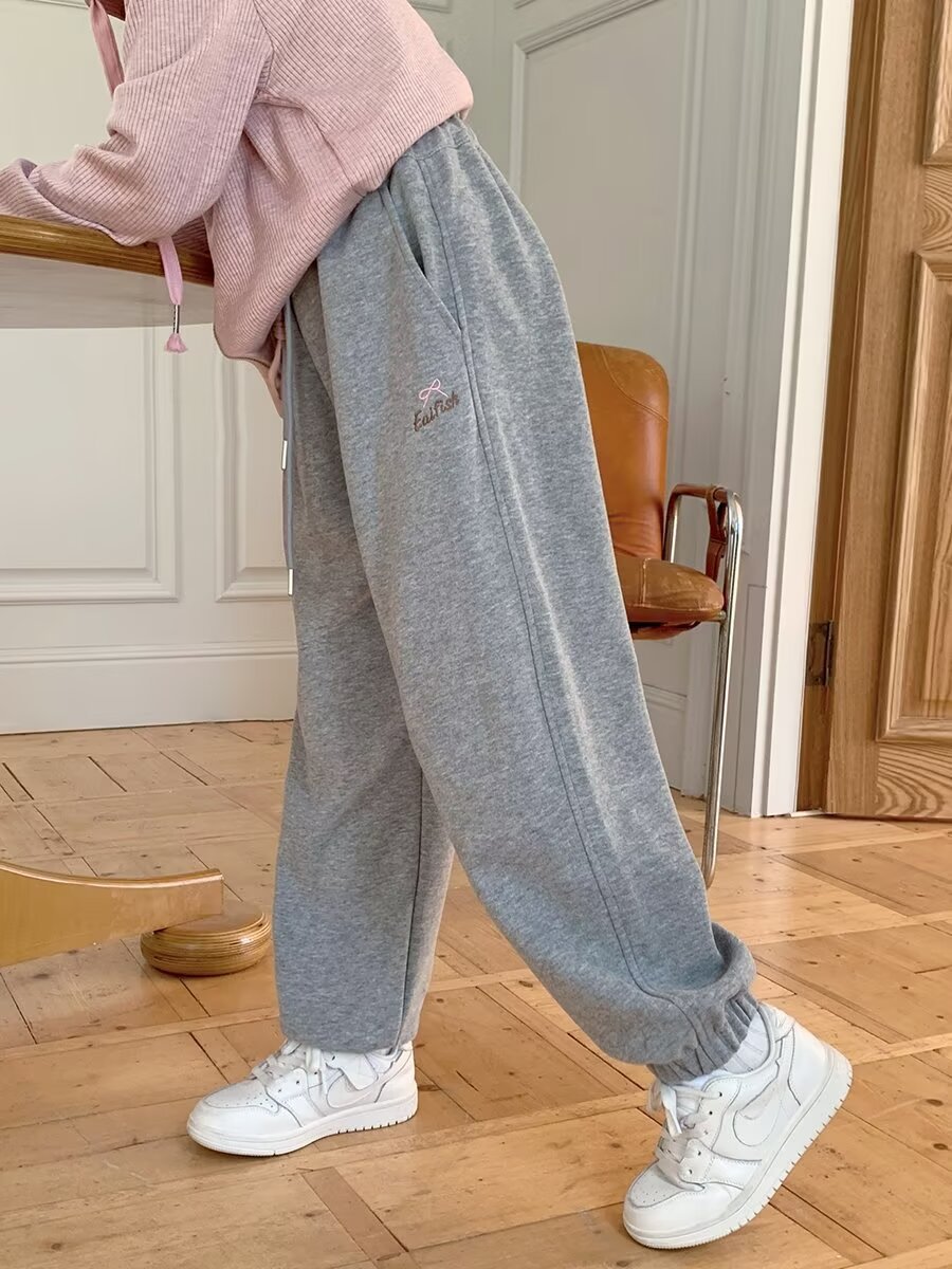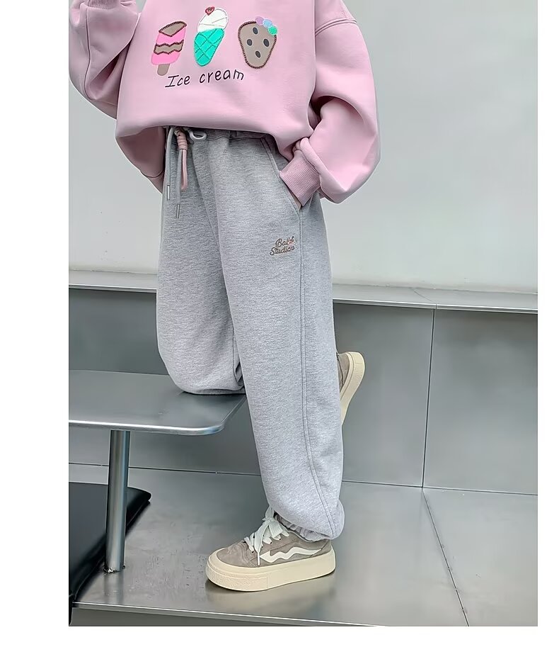회색 스포츠 바지 소녀 봄과 가을 2024 새로운 어린이 바나나 바지 소녀 넓은 다리 바지 소녀 마체테 바지스토어 가기
