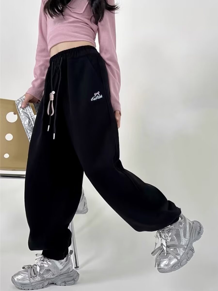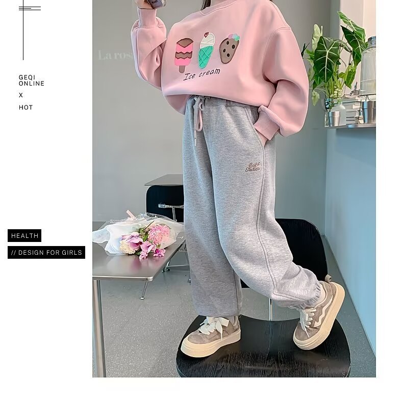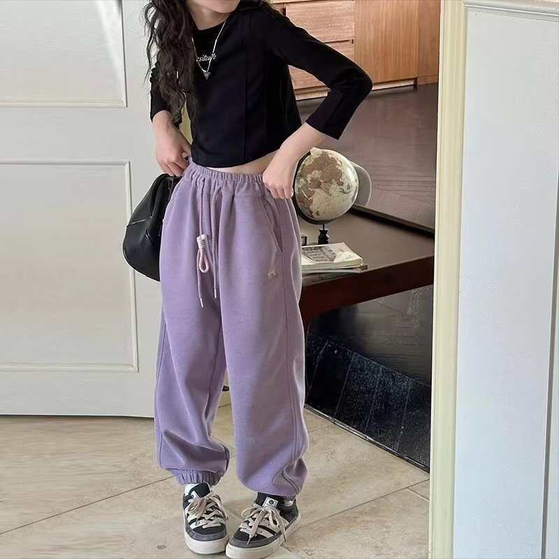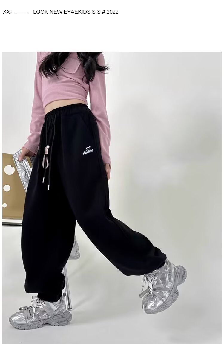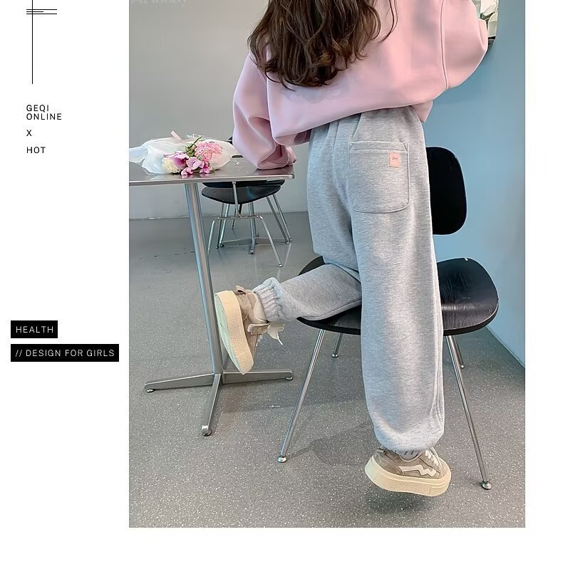 회색 스포츠 바지 소녀 봄과 가을 2024 새로운 어린이 바나나 바지 소녀 넓은 다리 바지 소녀 마체테 바지