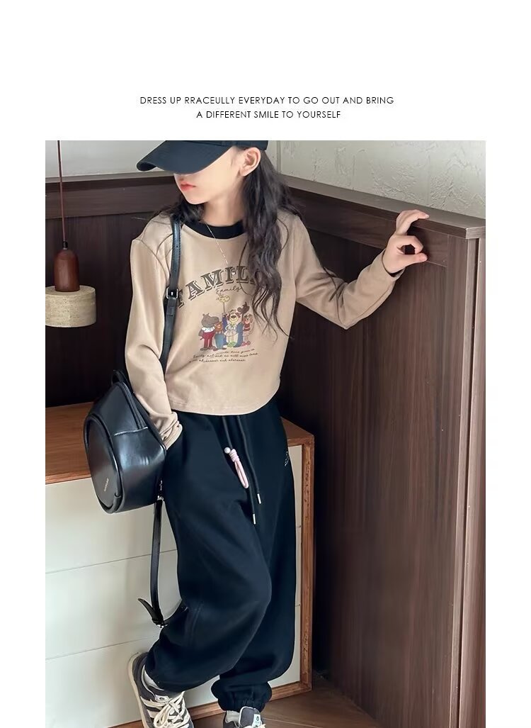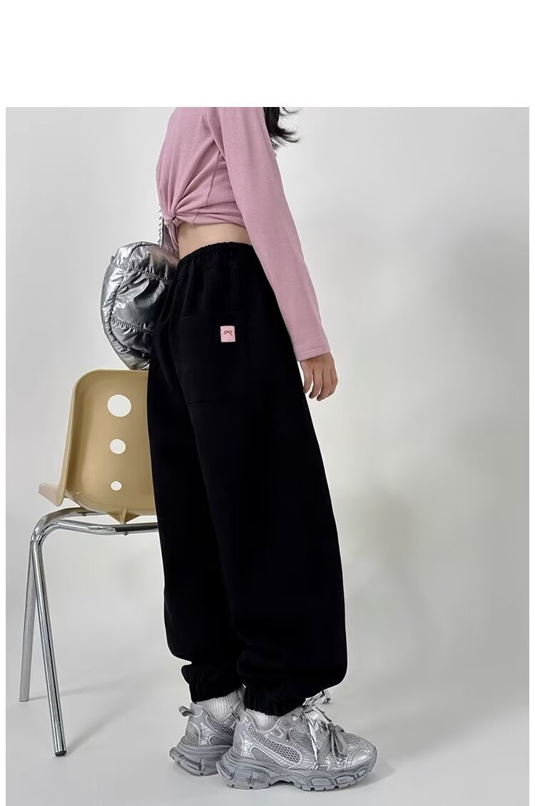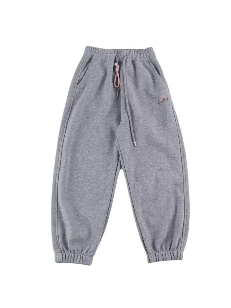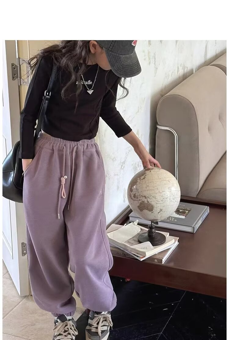 회색 스포츠 바지 소녀 봄과 가을 2024 새로운 어린이 바나나 바지 소녀 넓은 다리 바지 소녀 마체테 바지