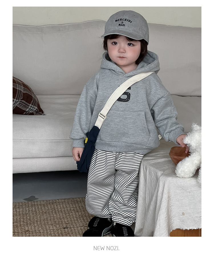 아기 옷 가을 겨울 두꺼운 후드티 세트 한국 스타일 아동복 남아 스트라이프 스웨트팬츠 플리스 투피스 세트스토어 가기