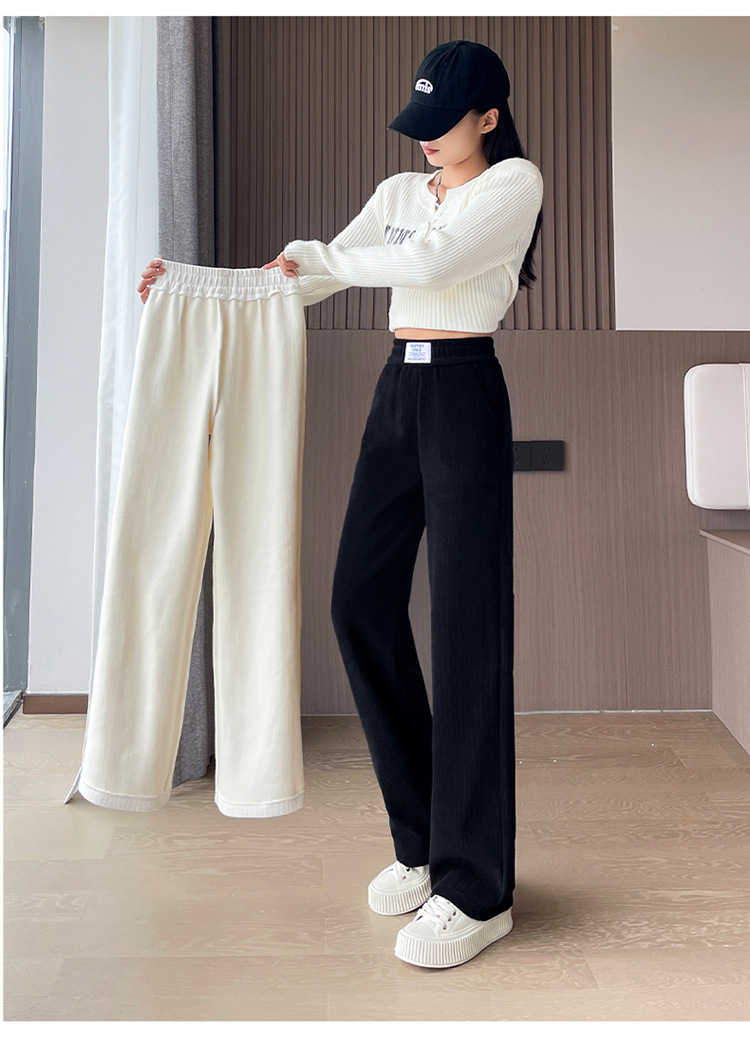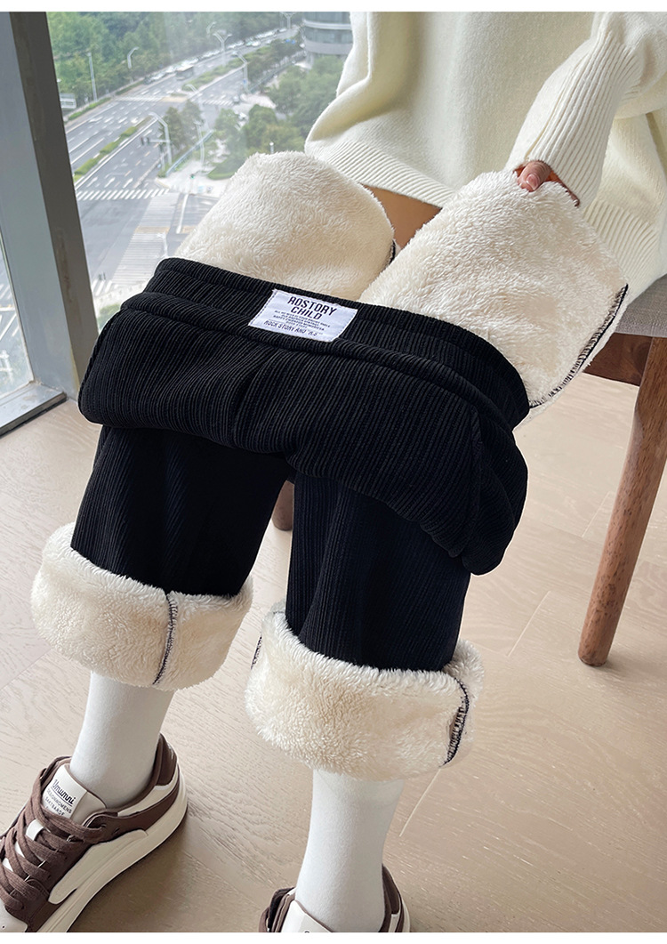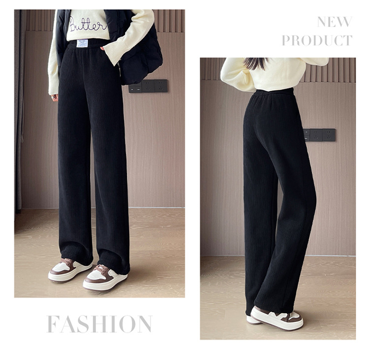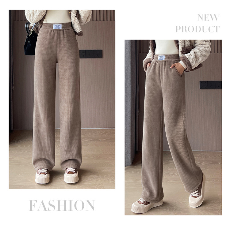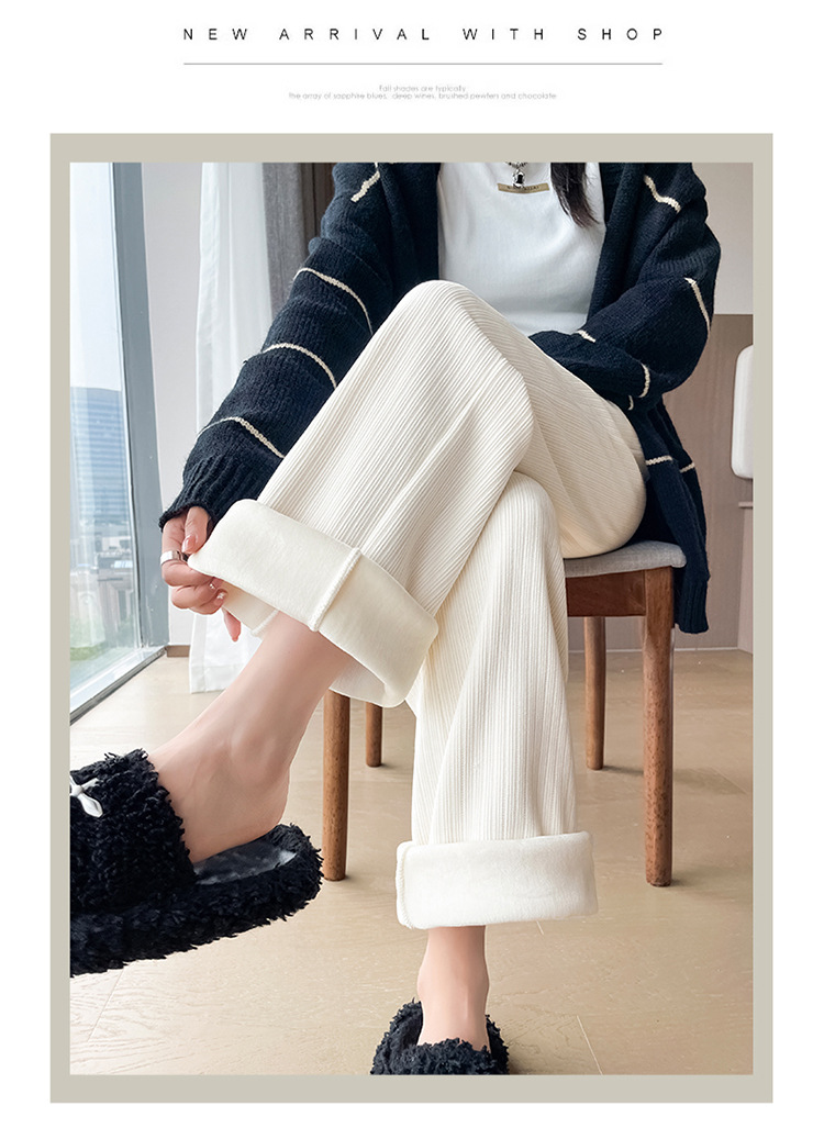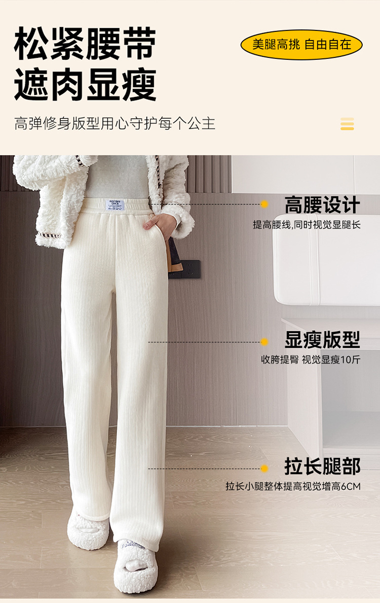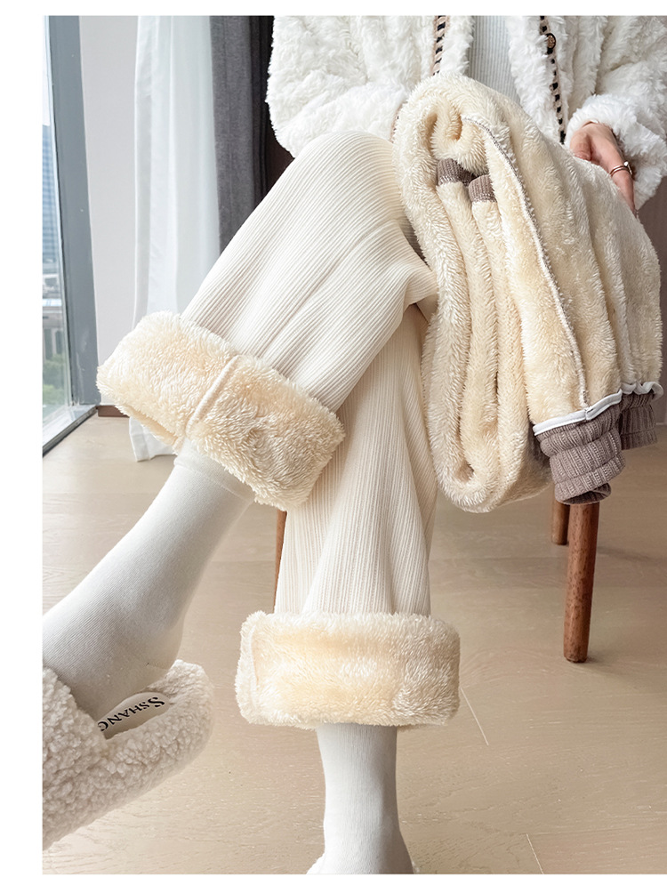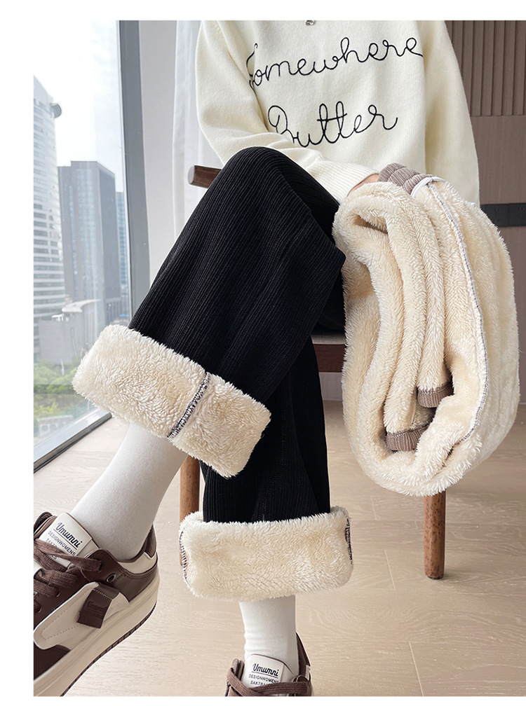 흰색 방풍 바지 여성의 가을과 겨울 2024 새로운 양고기 양털 두꺼운 좁은 넓은 다리 바지 따뜻한 바지 느슨한 직선 다리 바지스토어 가기