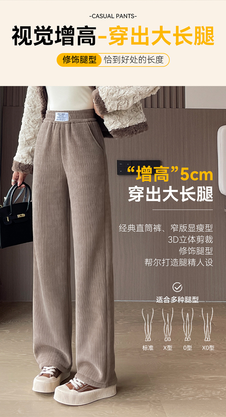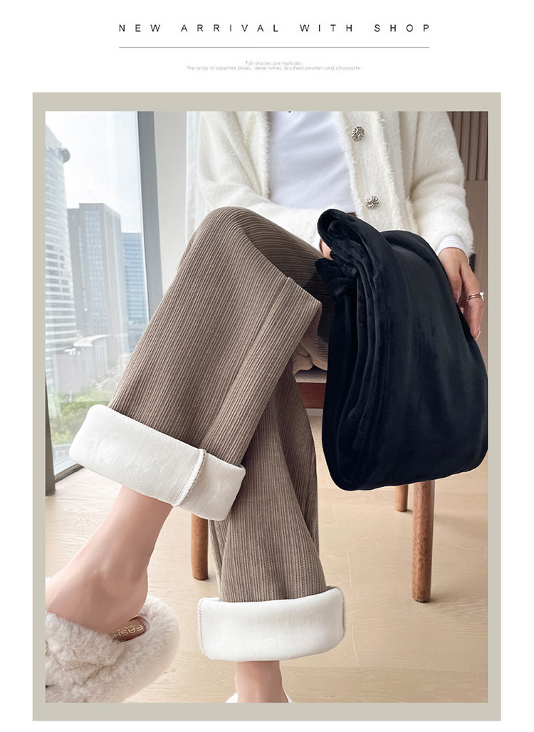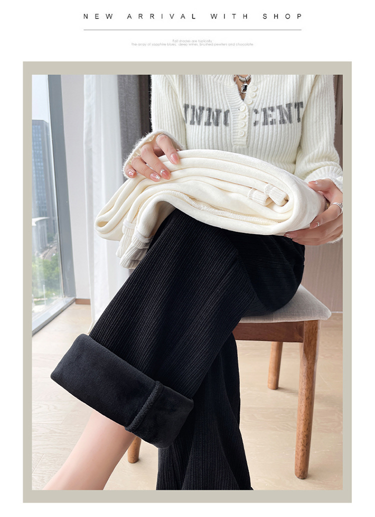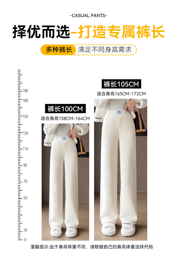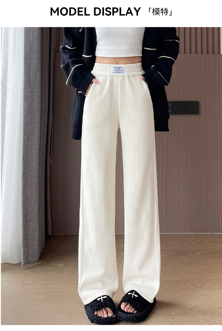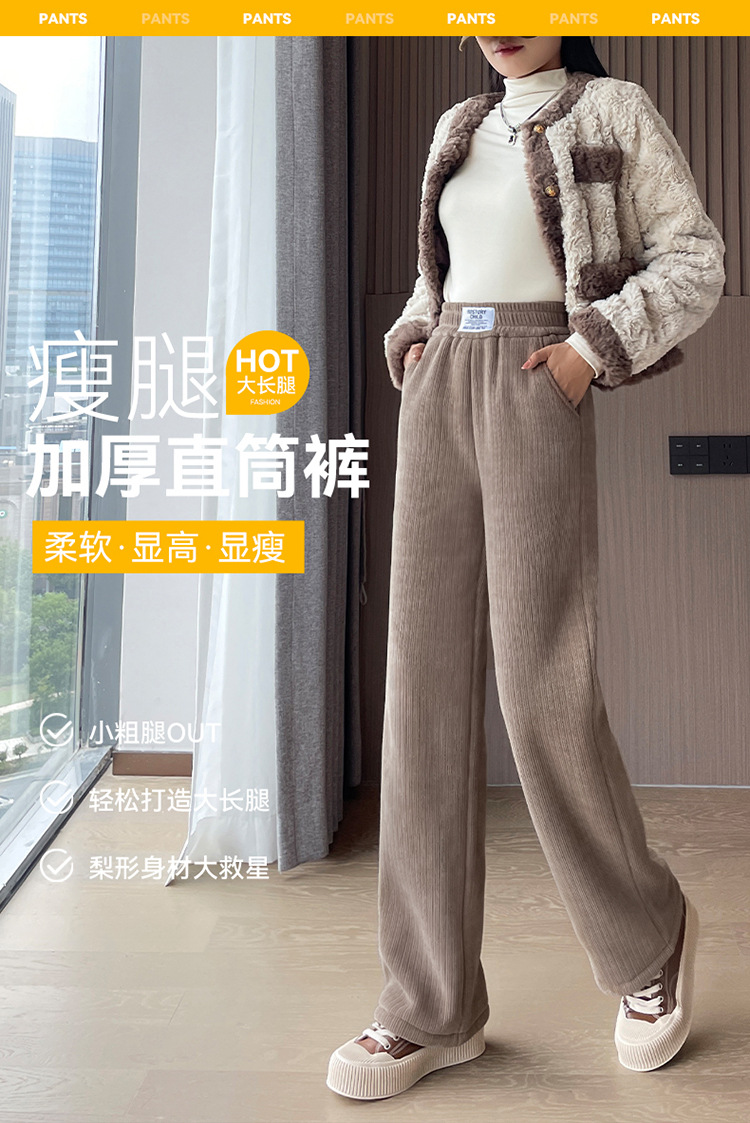 흰색 방풍 바지 여성의 가을과 겨울 2024 새로운 양고기 양털 두꺼운 좁은 넓은 다리 바지 따뜻한 바지 느슨한 직선 다리 바지스토어 가기