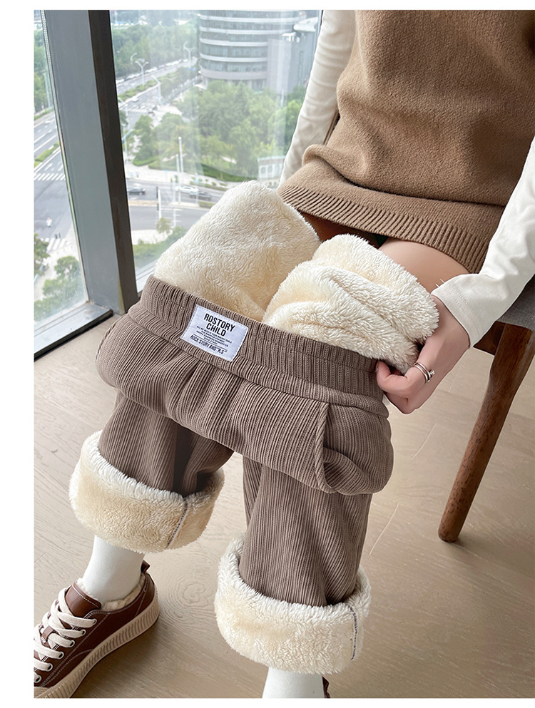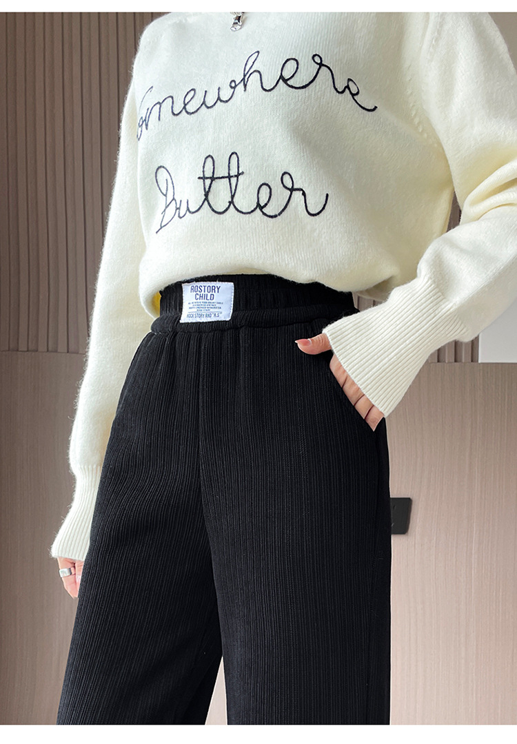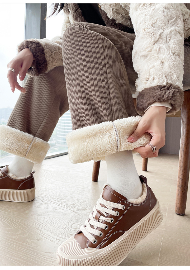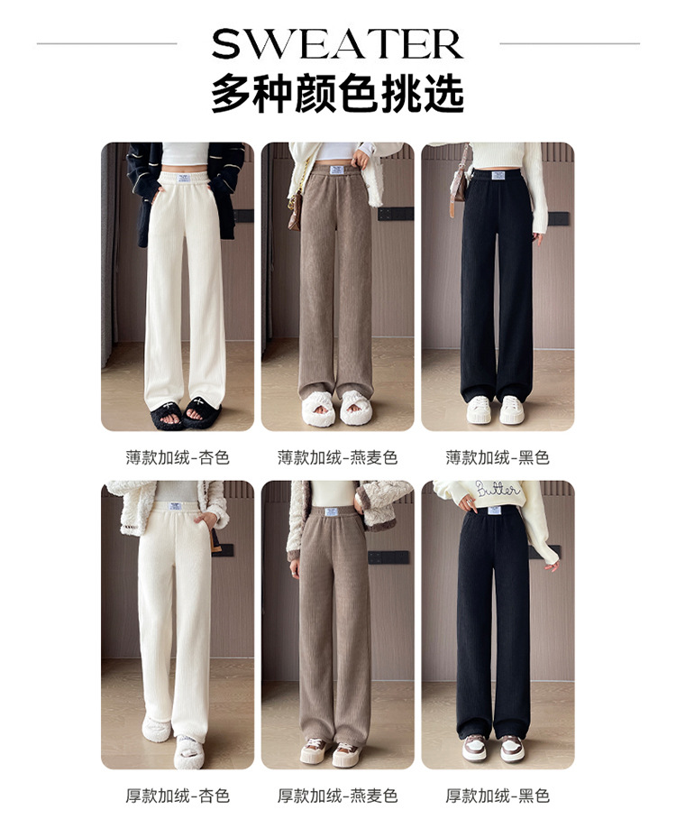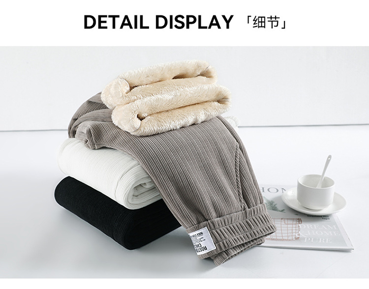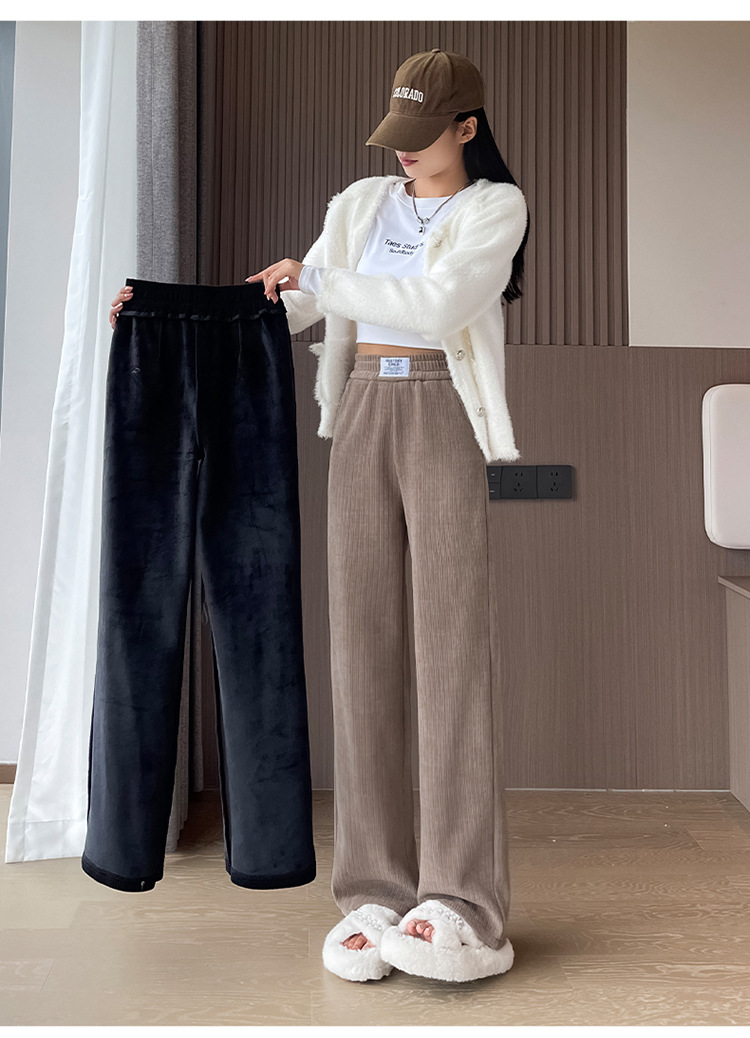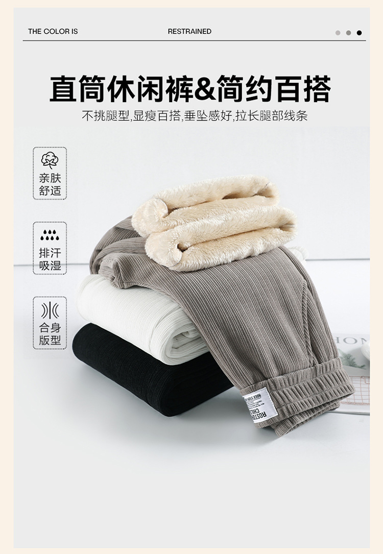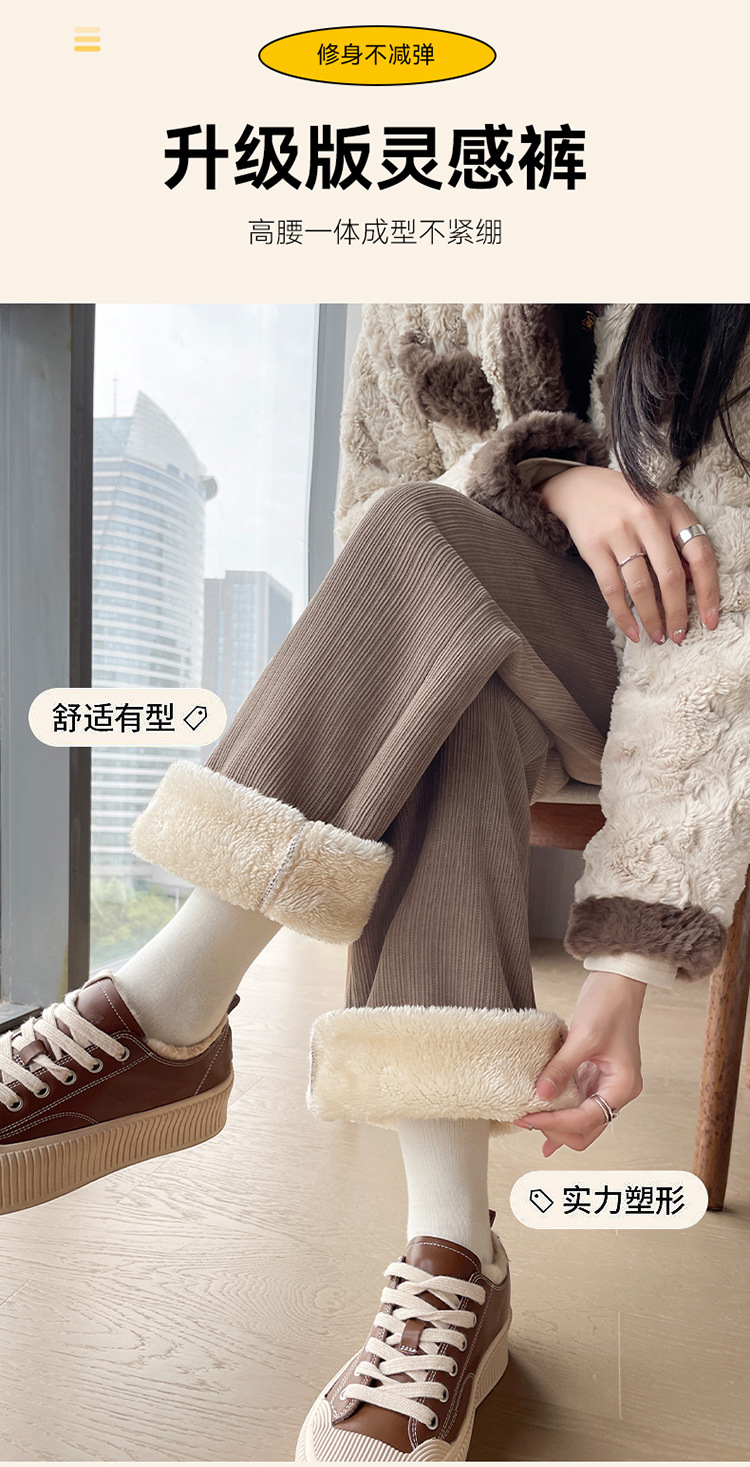 흰색 방풍 바지 여성의 가을과 겨울 2024 새로운 양고기 양털 두꺼운 좁은 넓은 다리 바지 따뜻한 바지 느슨한 직선 다리 바지스토어 가기