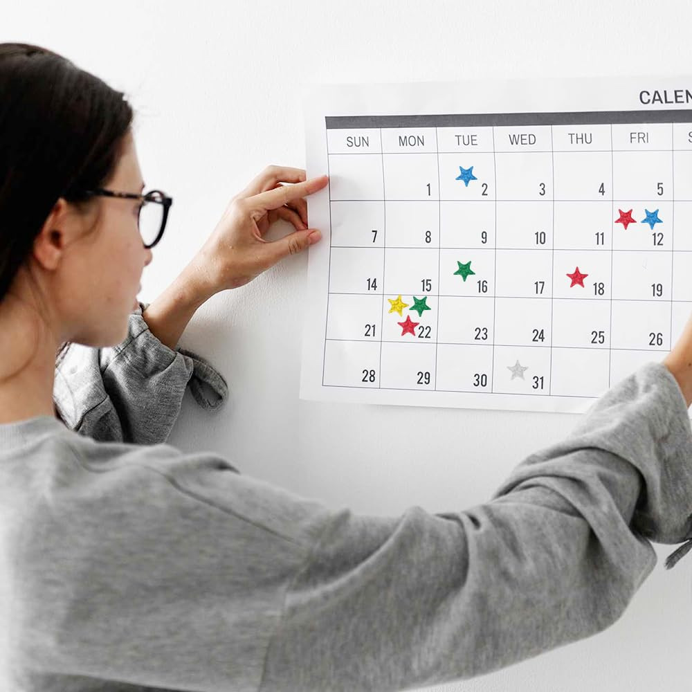 自律计划表格打卡贴彩色小星星贴纸蓝绿粉色五角星贴纸幼儿园脸贴