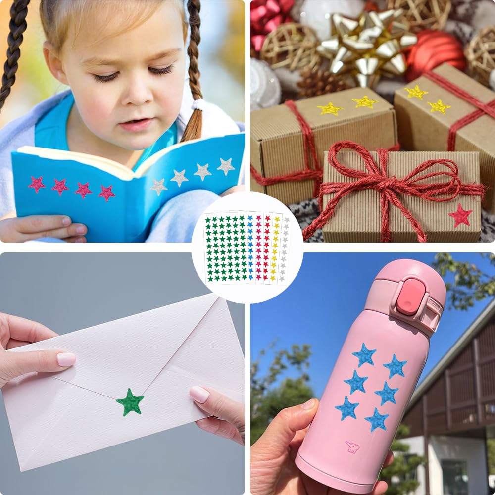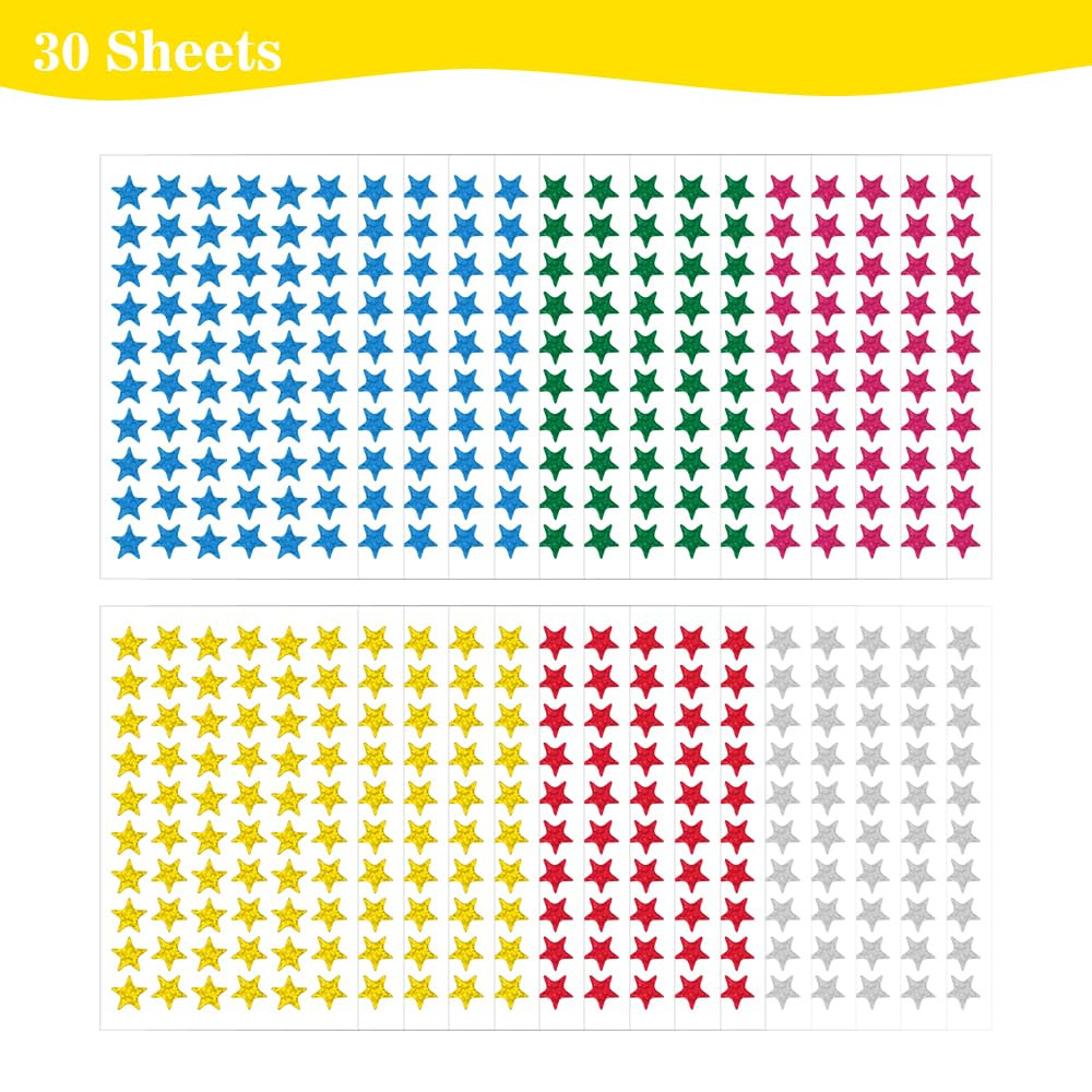 彩色星星镭射五角星闪光贴纸儿童奖励表扬跨境专供不干胶贴画贴纸