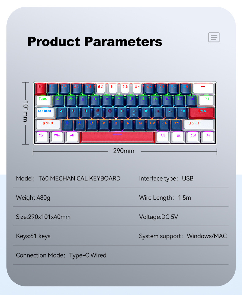 • T60 기계식 키보드 파란색과 흰색
