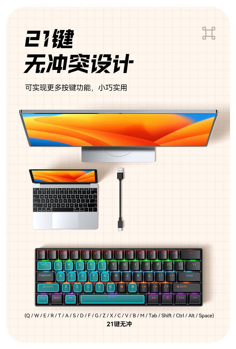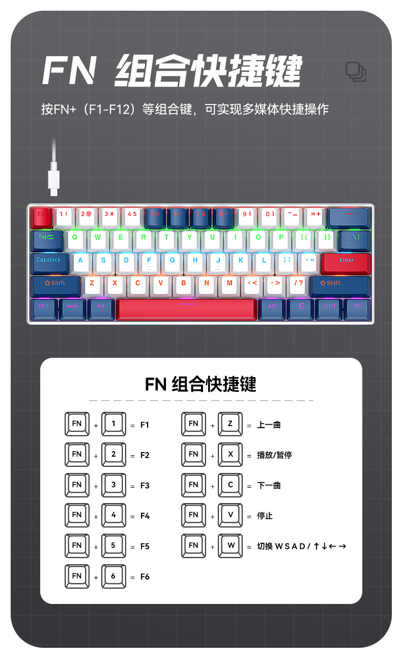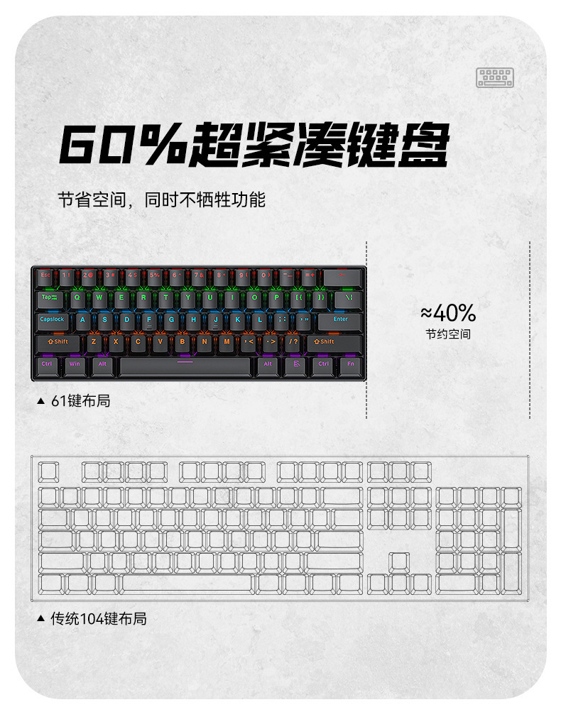 按键数量:61键 键盘尺寸:290x100x39mm