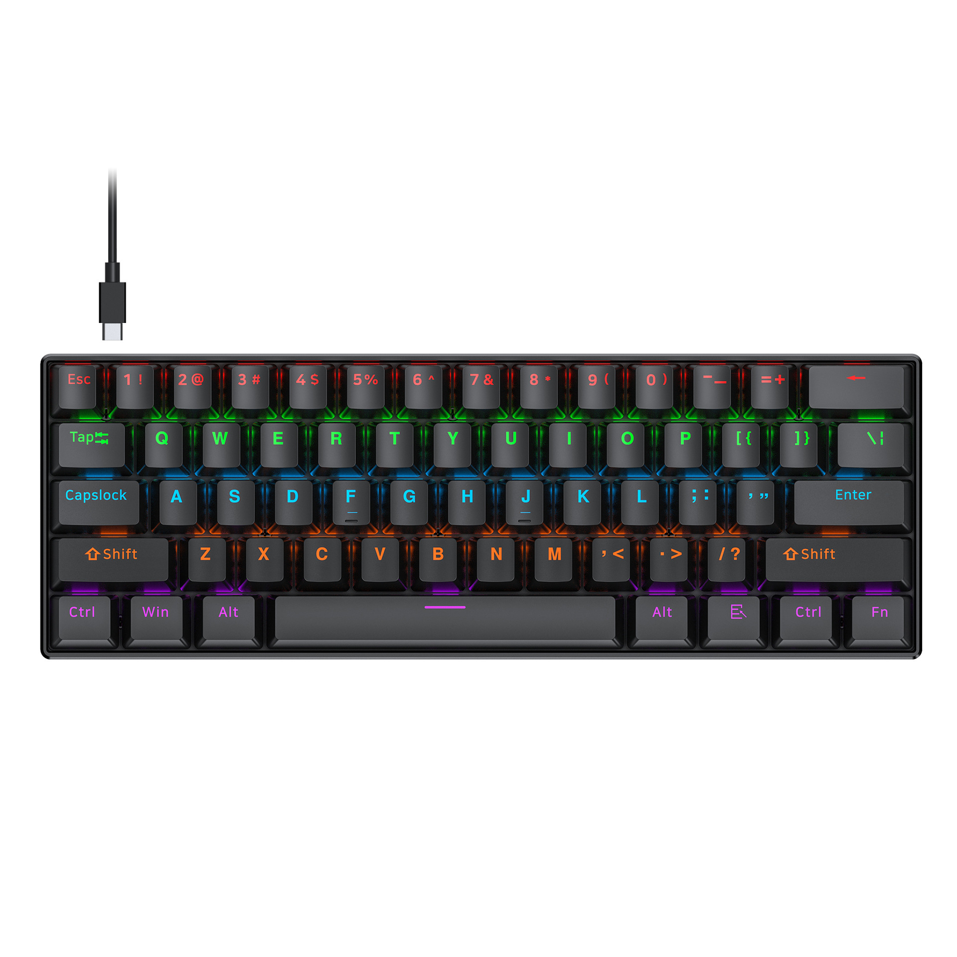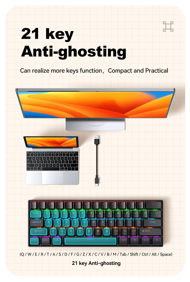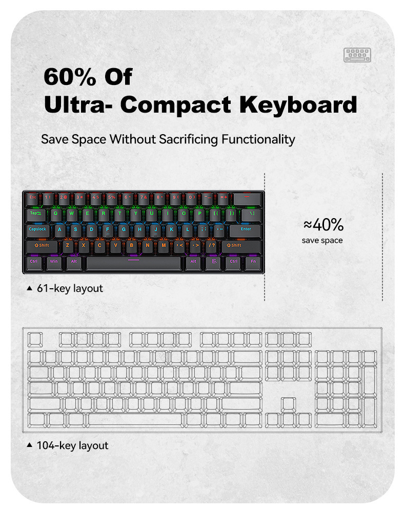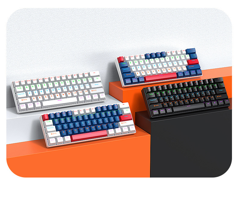 T-WOLF Thunder Wolf T60 기계식 키보드 핫 스왑 가능 61키 게임 혼합 조명 맞춤형 이중 색상 매칭 녹색 축 러시아어스토어 가기