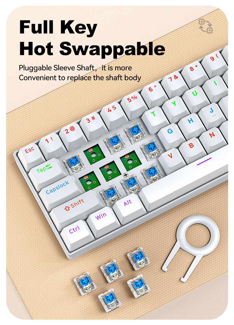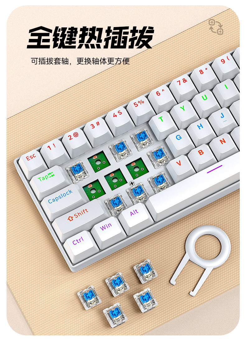 T-WOLF Thunder Wolf T60 기계식 키보드 핫 스왑 가능 61키 게임 혼합 조명 맞춤형 이중 색상 매칭 녹색 축 러시아어