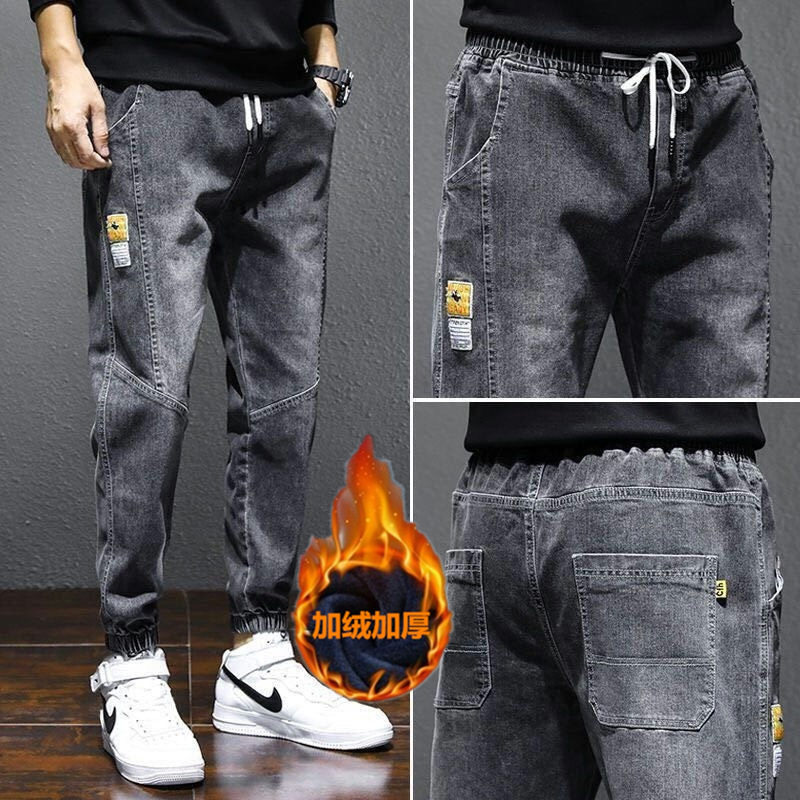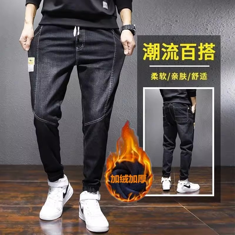 광저우 신탕 청바지 남성용 느슨한 가을과 겨울 기모 건설 현장에서 작업을위한 내마모성 긴 바지를 착용하십시오.스토어 가기