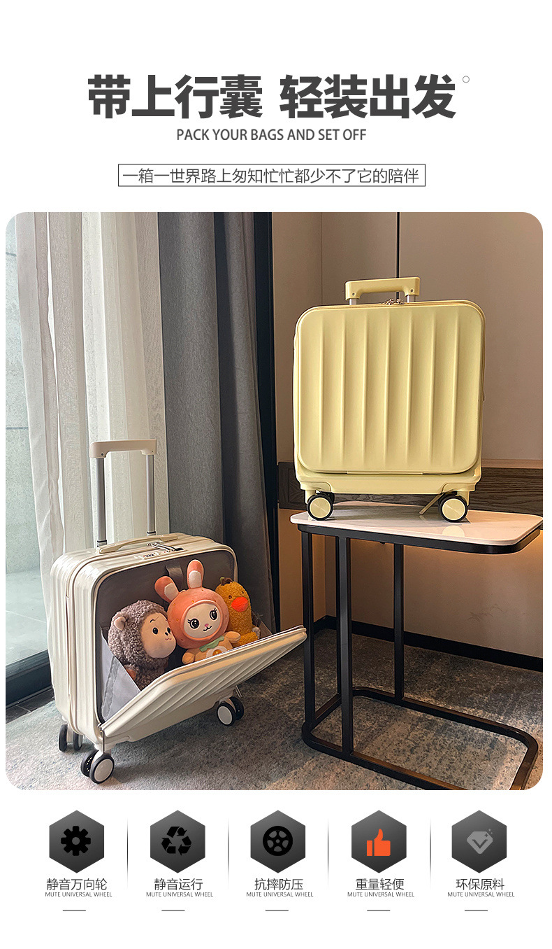 짐 케이스 여성 프론트 오프닝 18 인치 작은 트롤리 케이스 경량 미니 다기능 무료 배송 20 인치스토어 가기