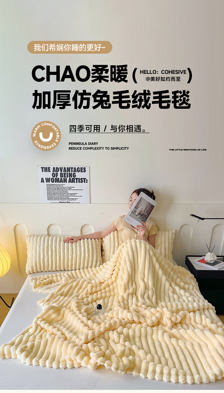 국경 양면 담요 모조 토끼 담요 소파 담요 캐주얼 담요 가을과 겨울 두꺼운 담요 에어컨 낮잠스토어 가기
