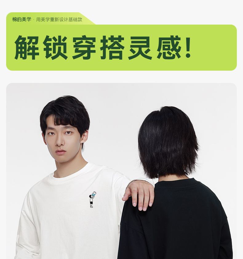 "면화의 미학" 낙서 인쇄 긴팔 티셔츠 남성 가을 겨울 새로운 캐주얼 트렌디 루즈베이스 셔츠 커플