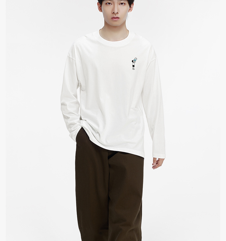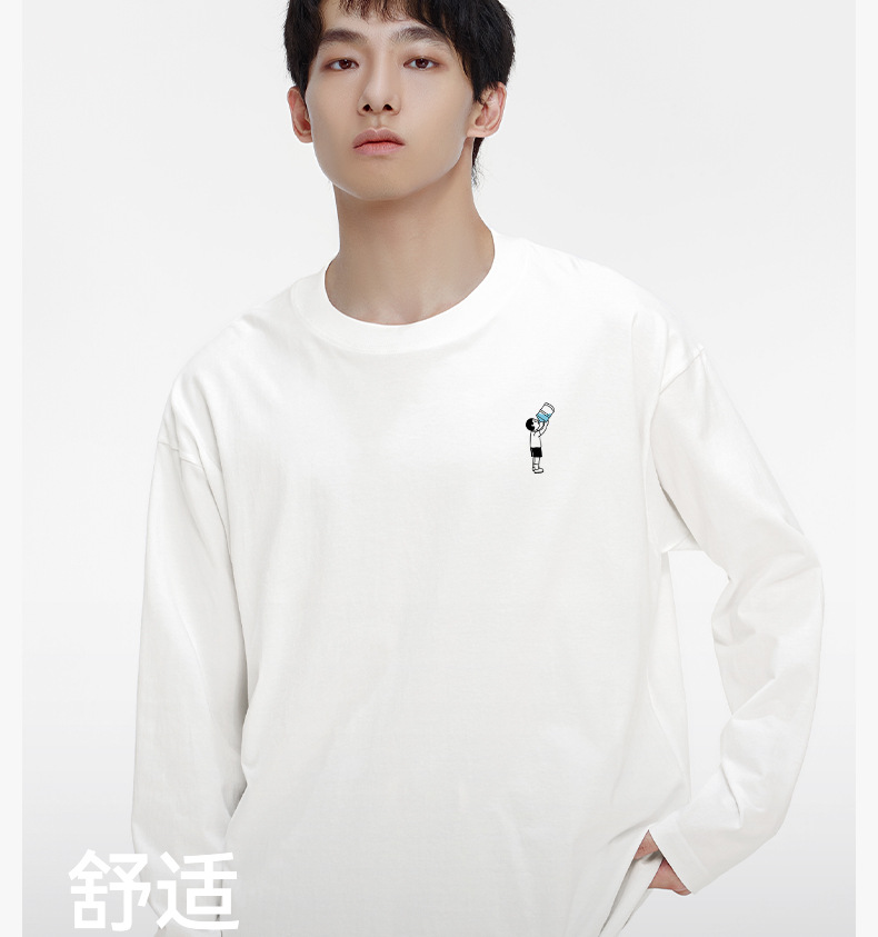 "면화의 미학" 낙서 인쇄 긴팔 티셔츠 남성 가을 겨울 새로운 캐주얼 트렌디 루즈베이스 셔츠 커플스토어 가기