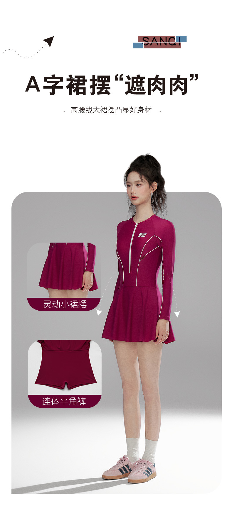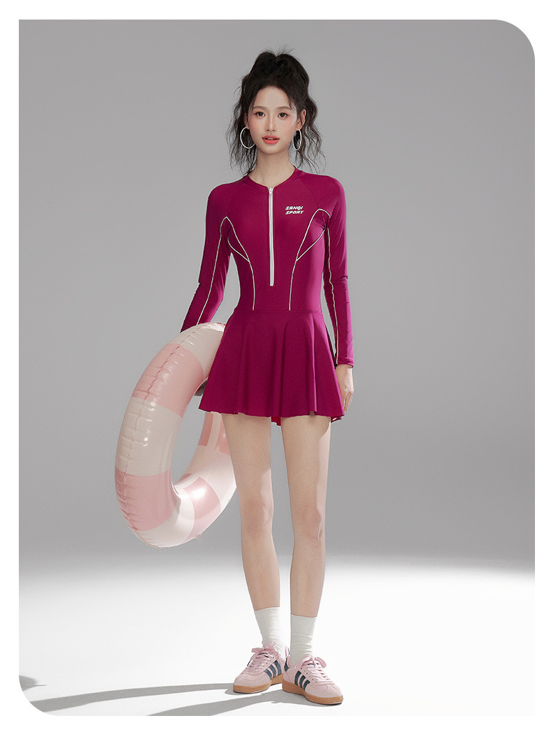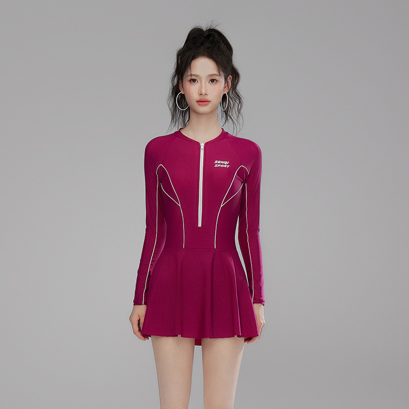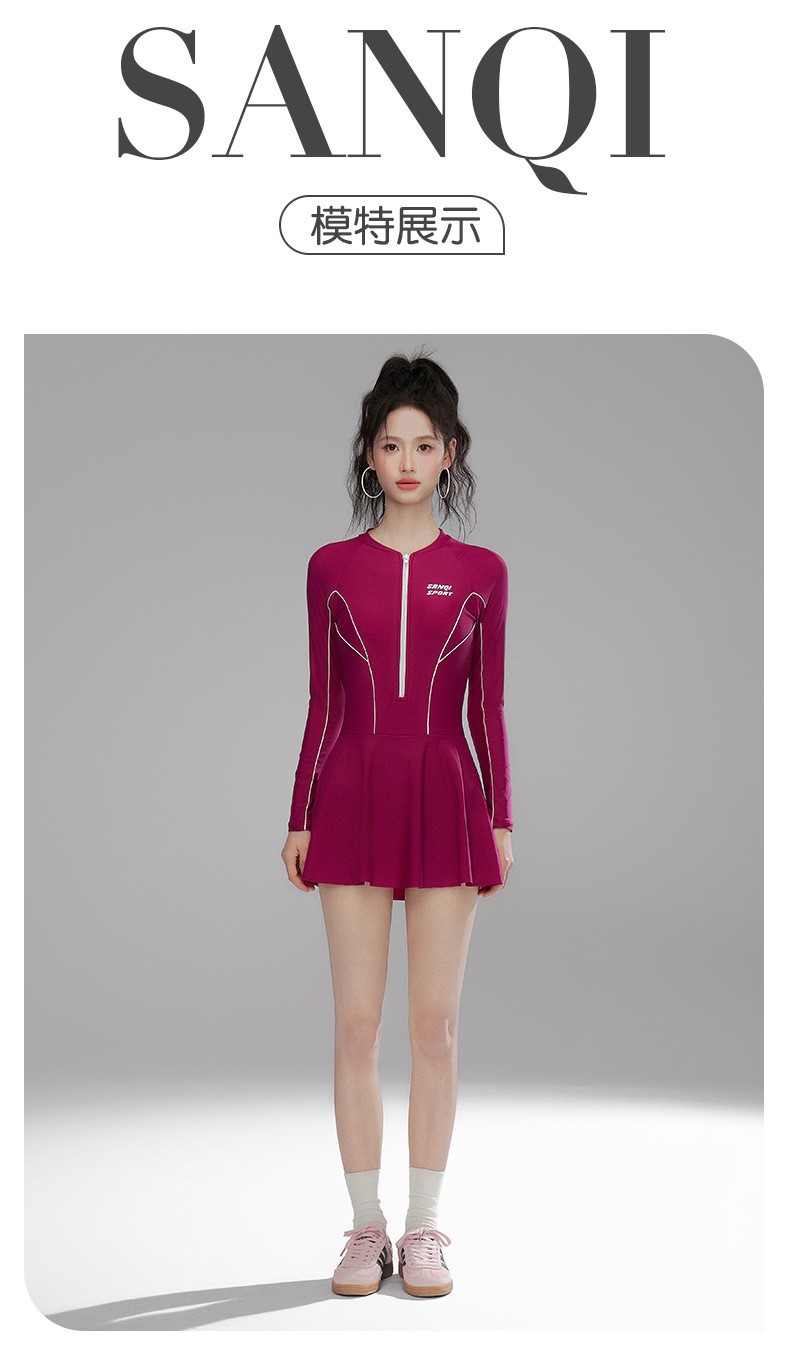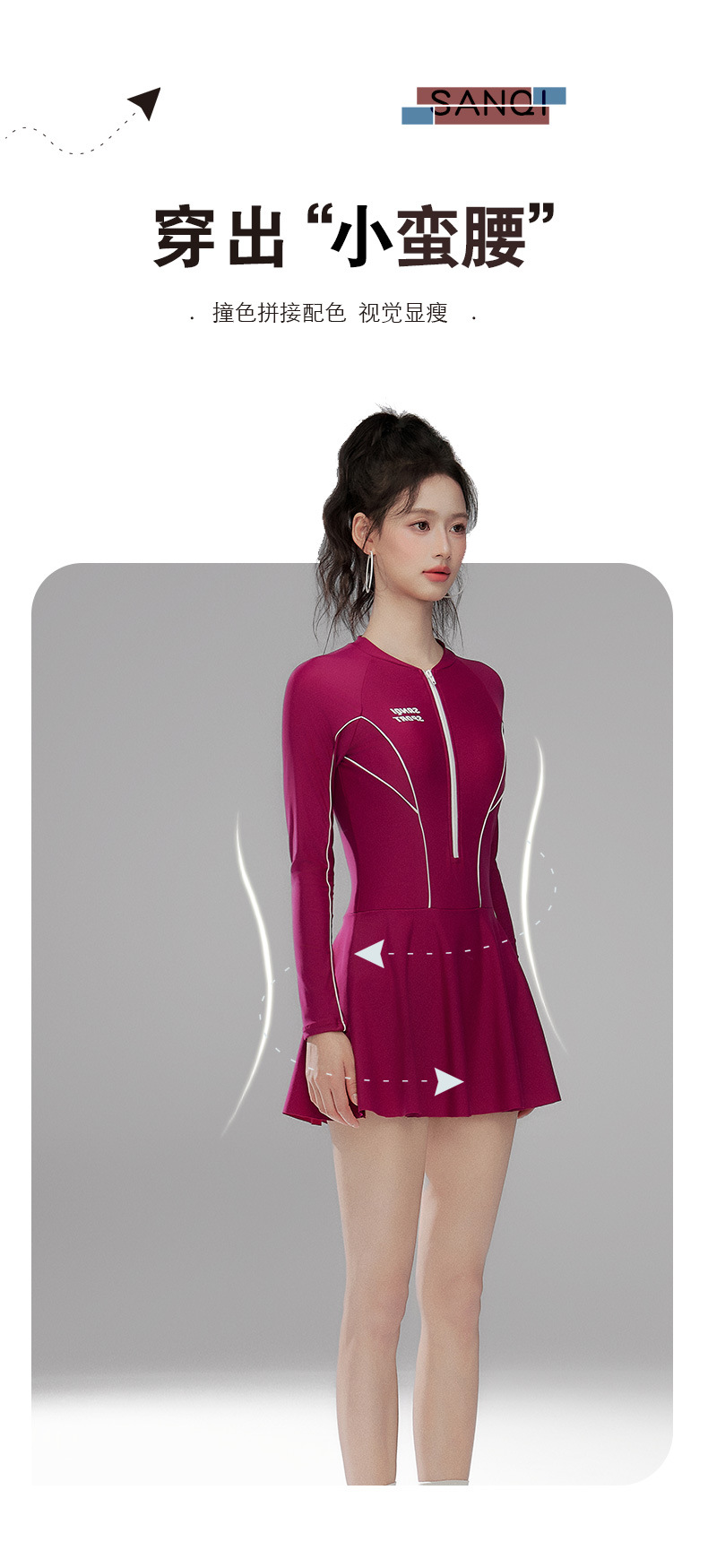 Sanqi 수영 세트 여성의 2024 새로운 폭발 긴 소매 선 스크린 바디 스커트 슬림 수영장 수영복을 덮는 배꼽스토어 가기