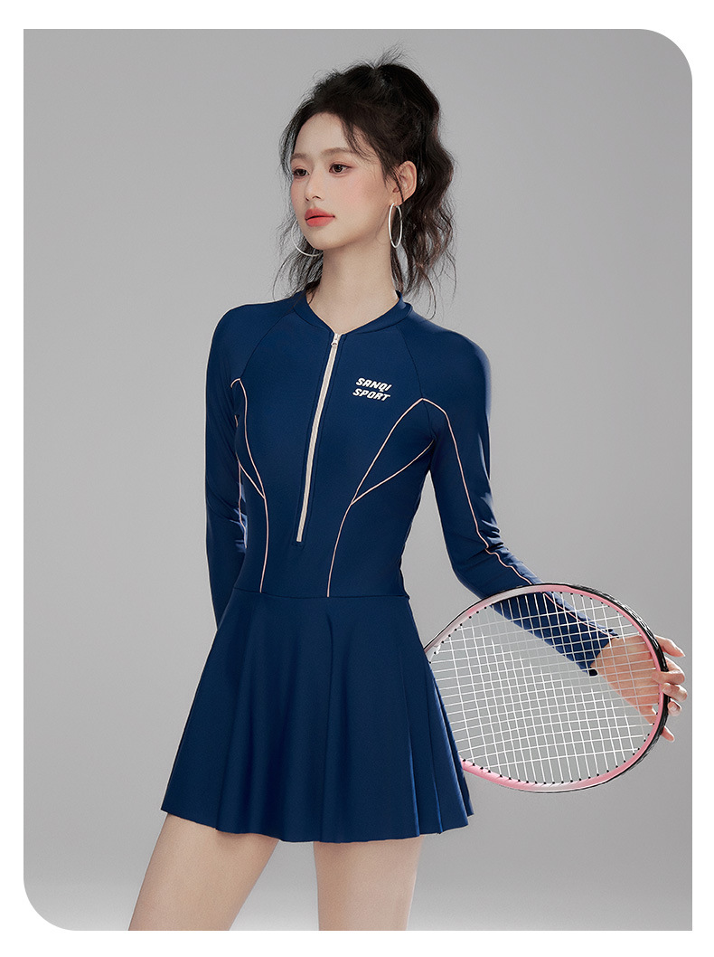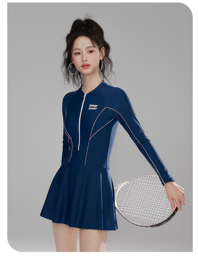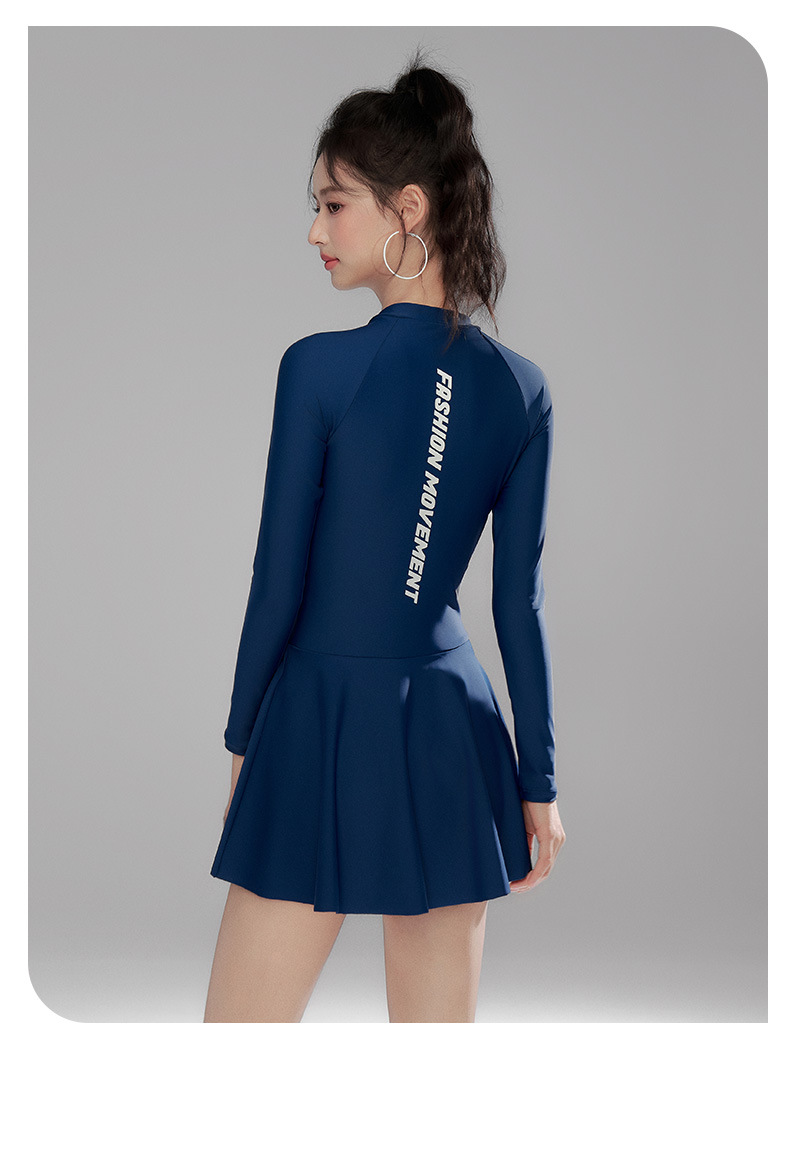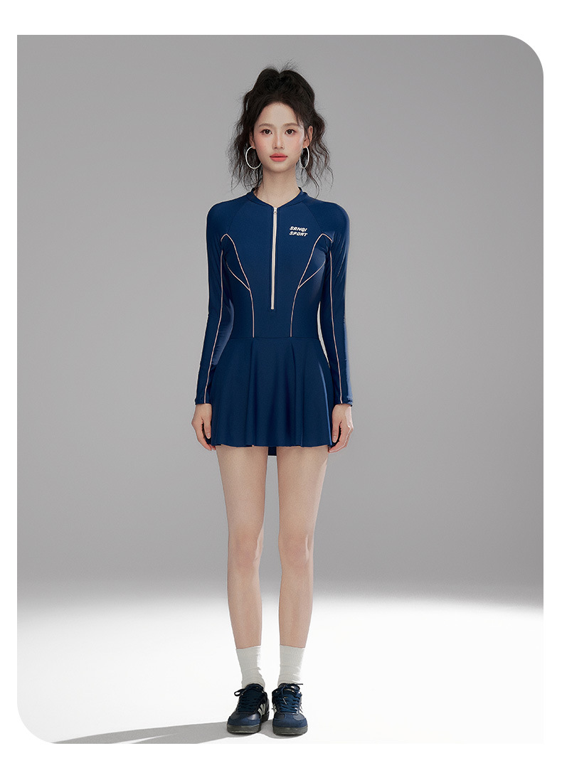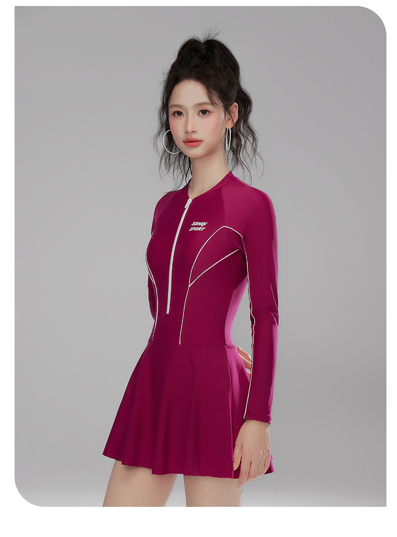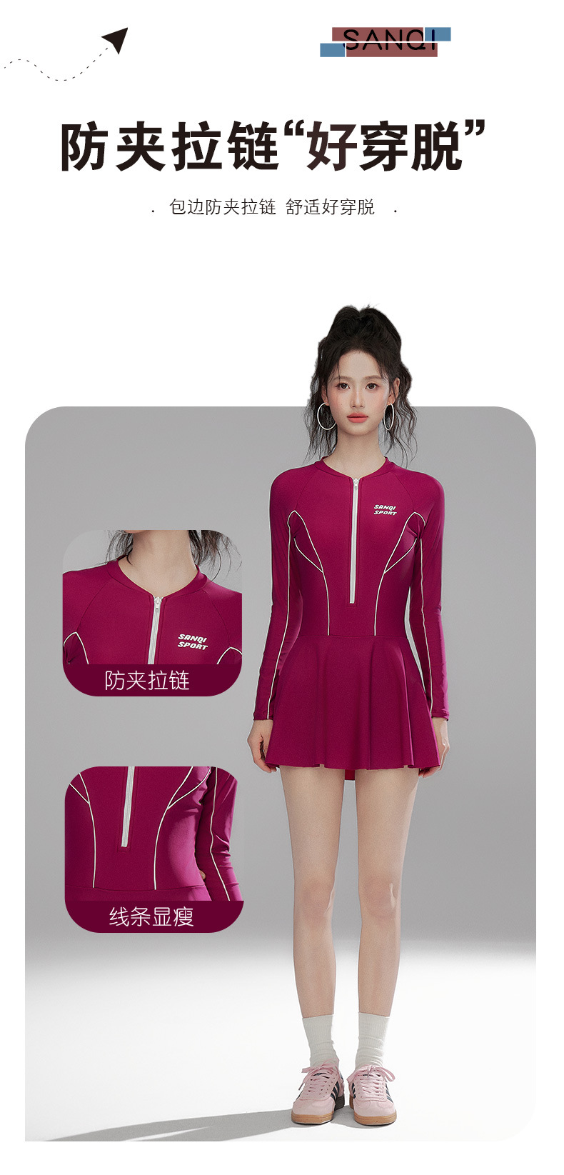 Sanqi 수영 세트 여성의 2024 새로운 폭발 긴 소매 선 스크린 바디 스커트 슬림 수영장 수영복을 덮는 배꼽스토어 가기