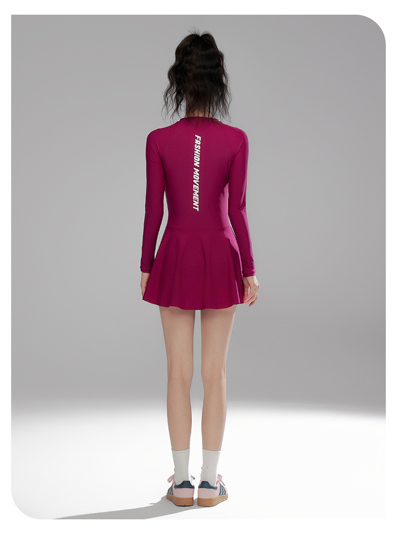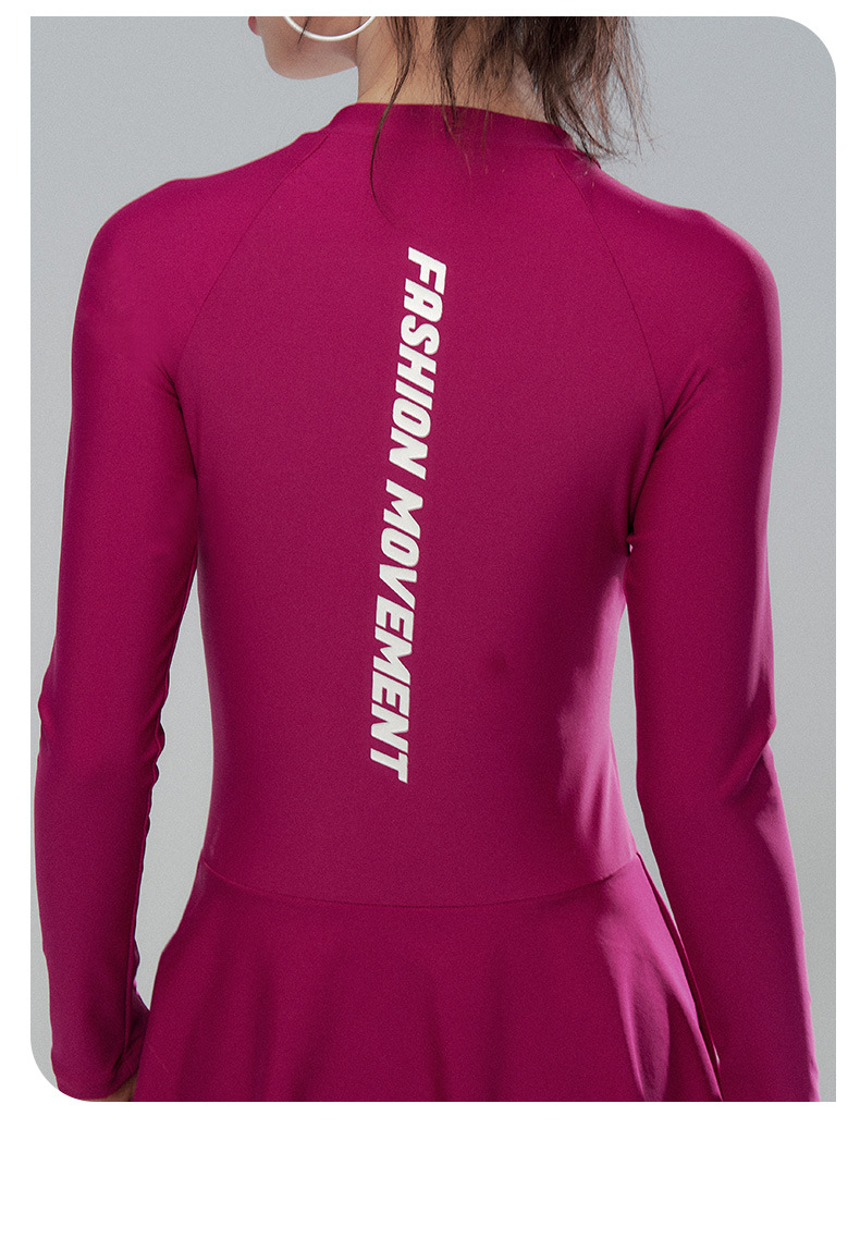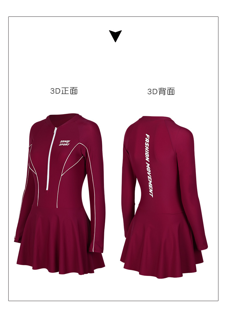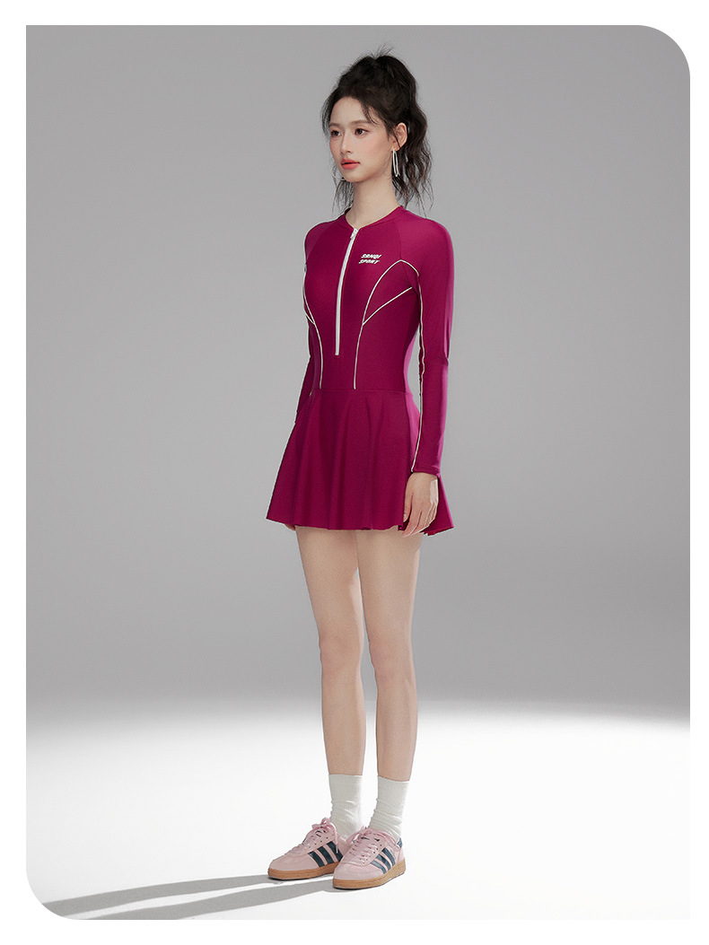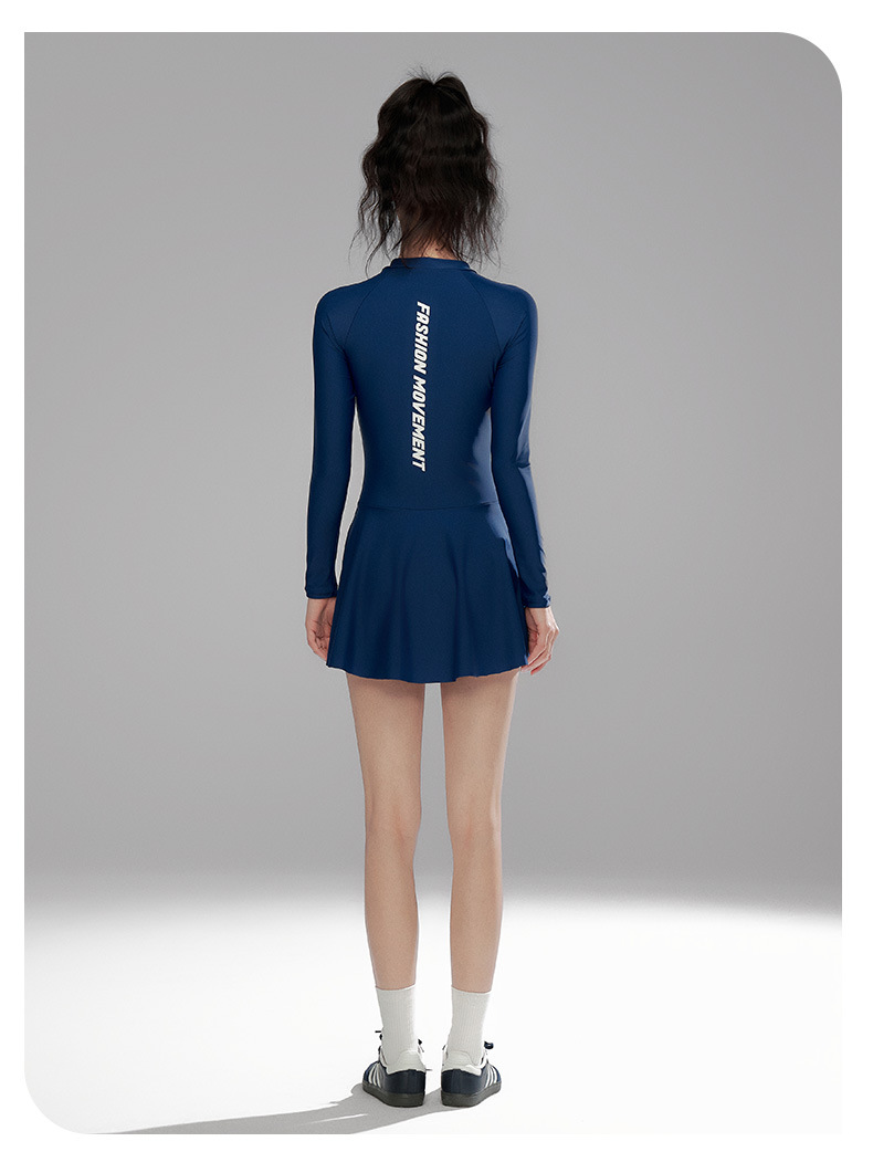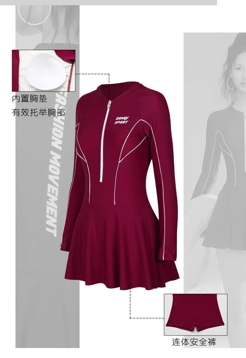 Sanqi 수영 세트 여성의 2024 새로운 폭발 긴 소매 선 스크린 바디 스커트 슬림 수영장 수영복을 덮는 배꼽스토어 가기