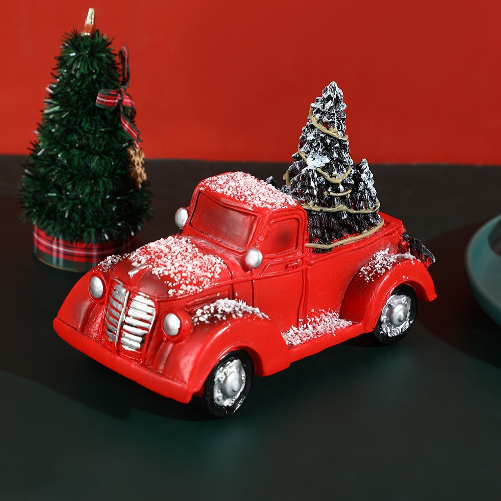 크리스마스 창조적 인 자동차 장식품 빨간 카트 수지 공예 가정 장식품 크리스마스 휴일 선물