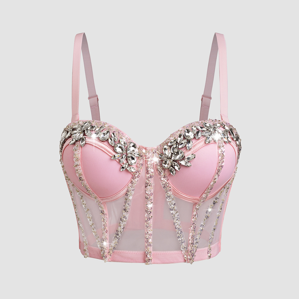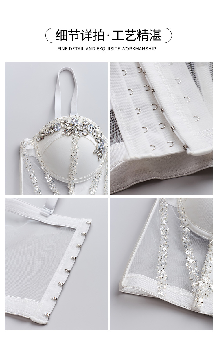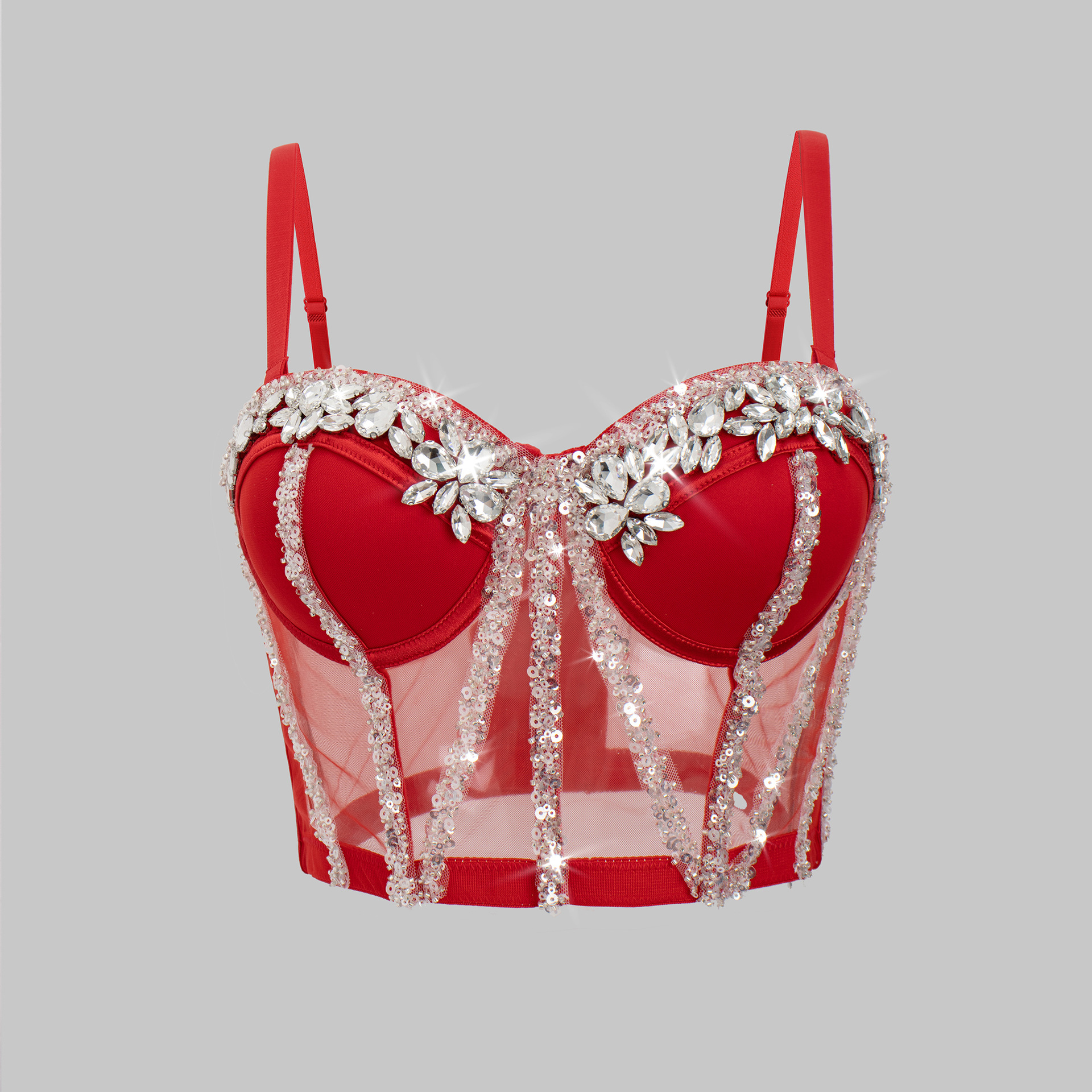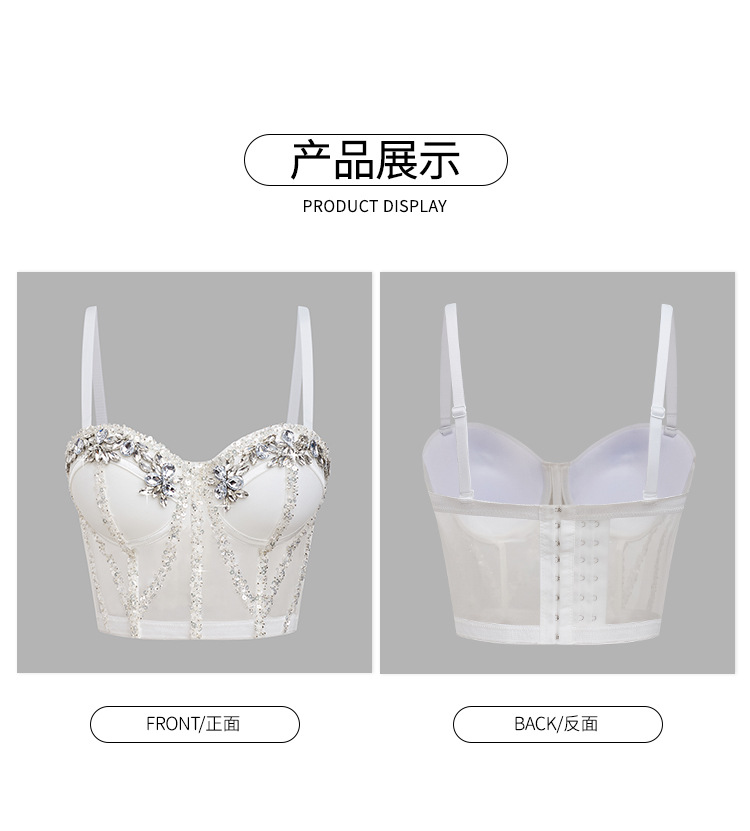루추궈 끈나시 순수 수제 크리스탈 스팽글 브라탑 외출용 단색 여성용 끈나시 DB1750