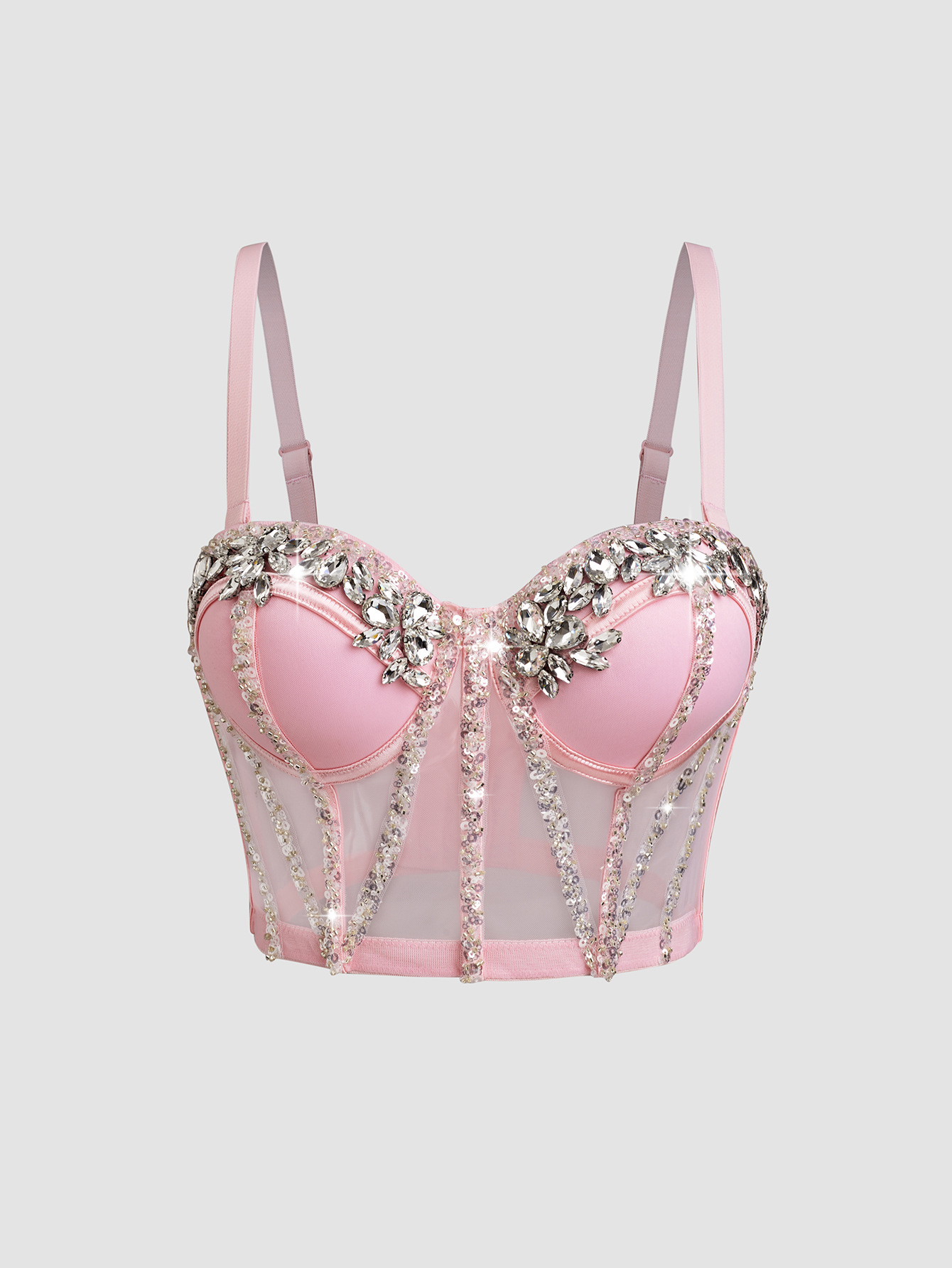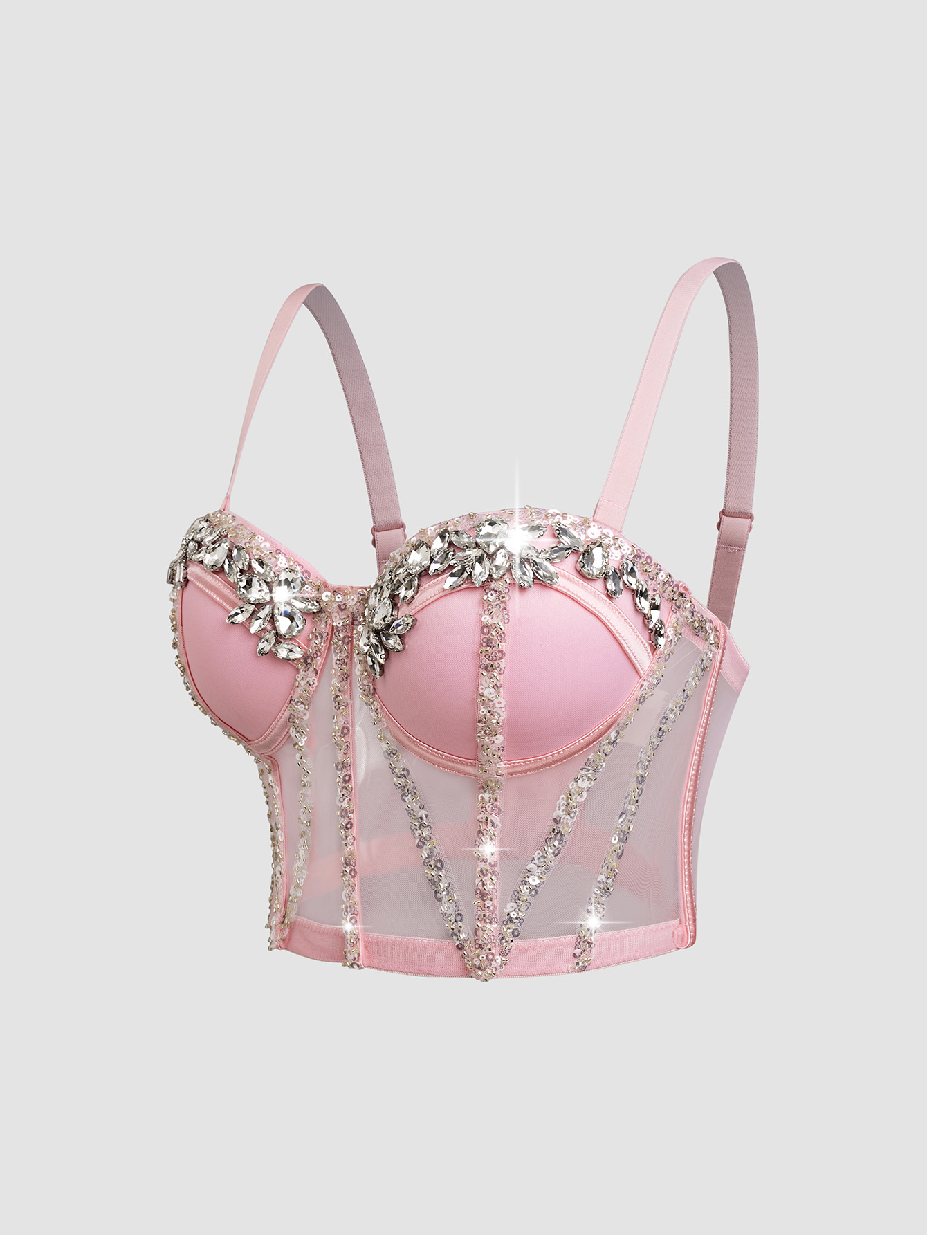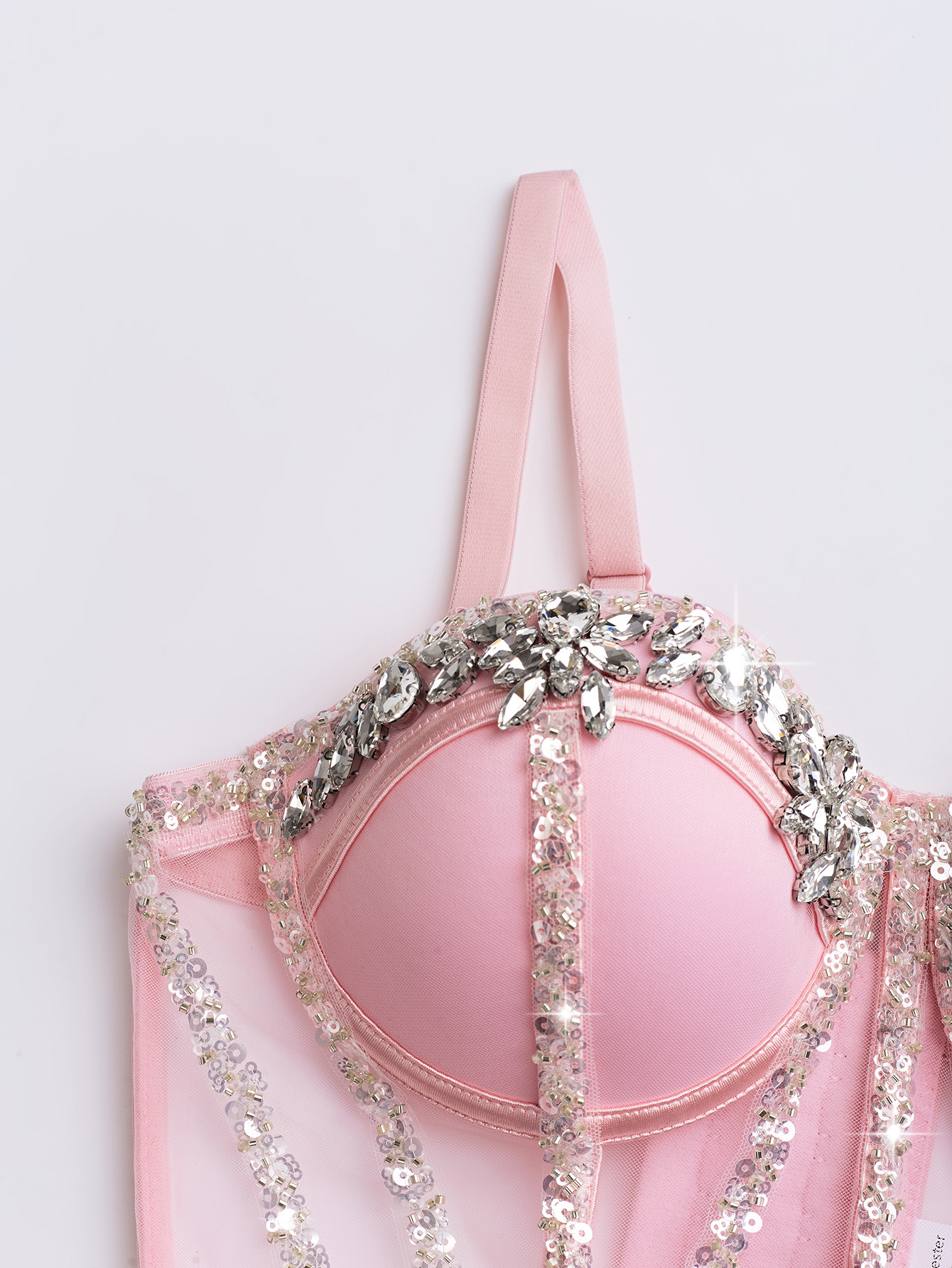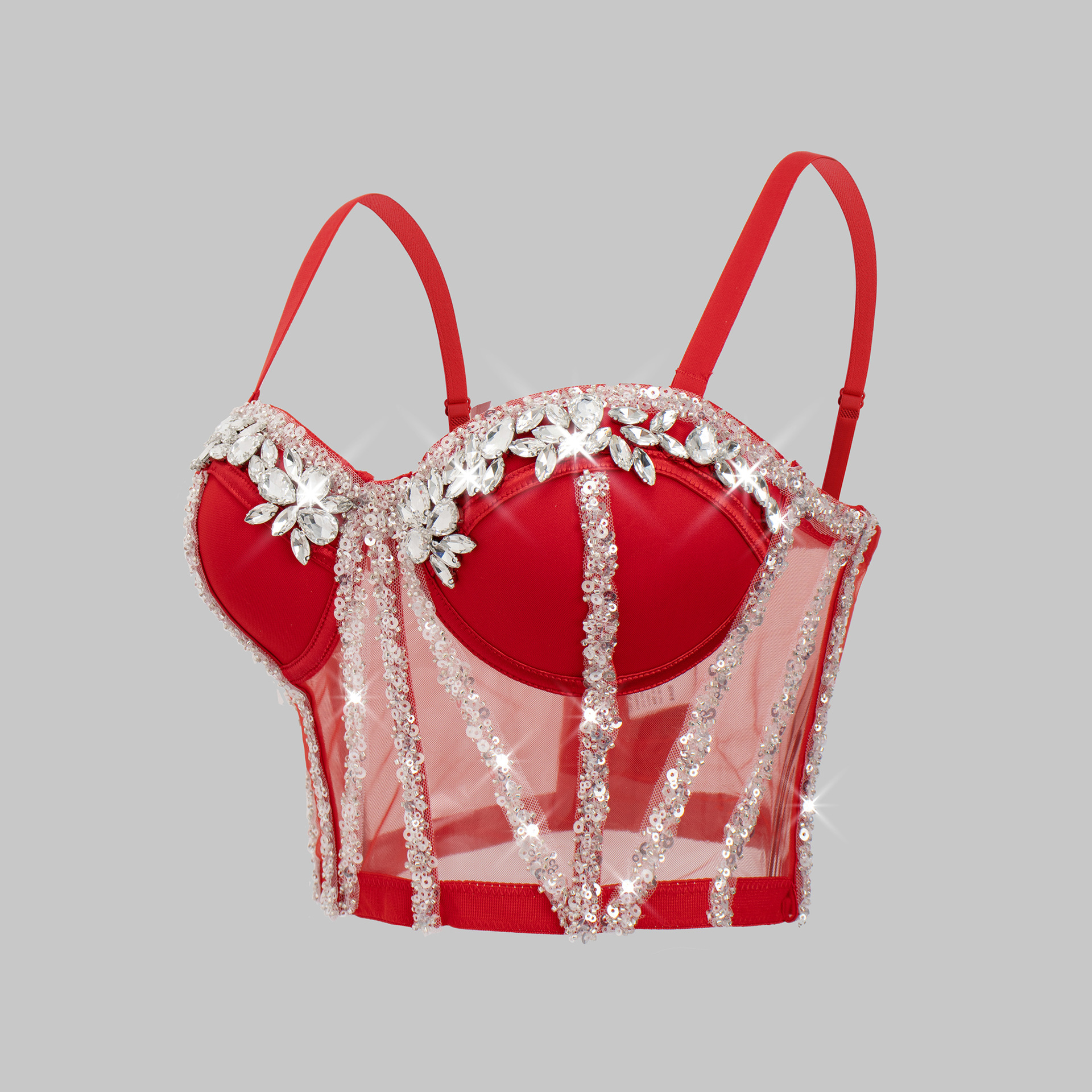 루추궈 끈나시 순수 수제 크리스탈 스팽글 브라탑 외출용 단색 여성용 끈나시 DB1750