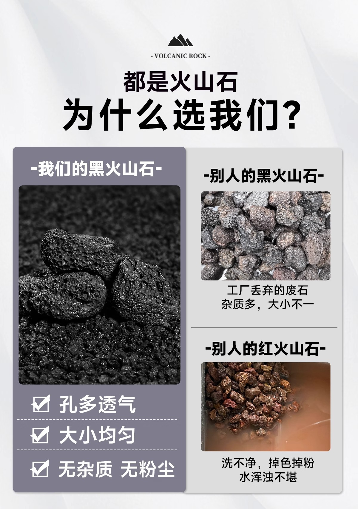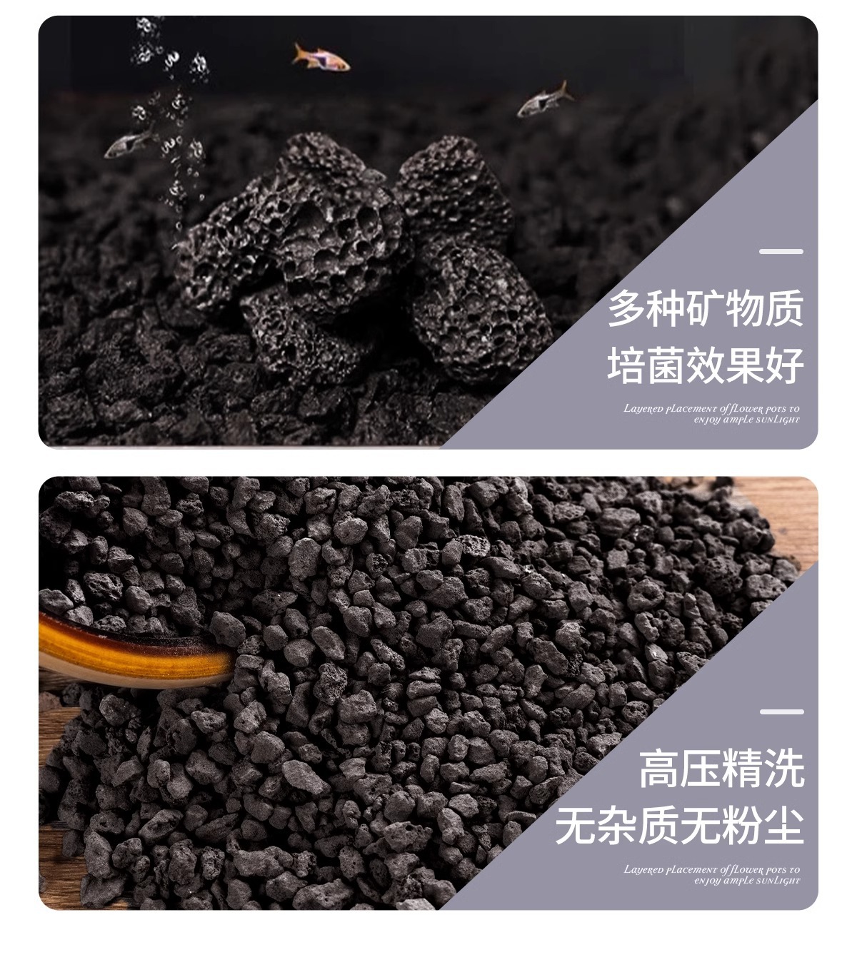 검은 천연 화산석 대형 입자 대형 가방 도매 베이스 스트레이트 헤어 즙이 많은 포장 수조 조경 필터 바닥 모래