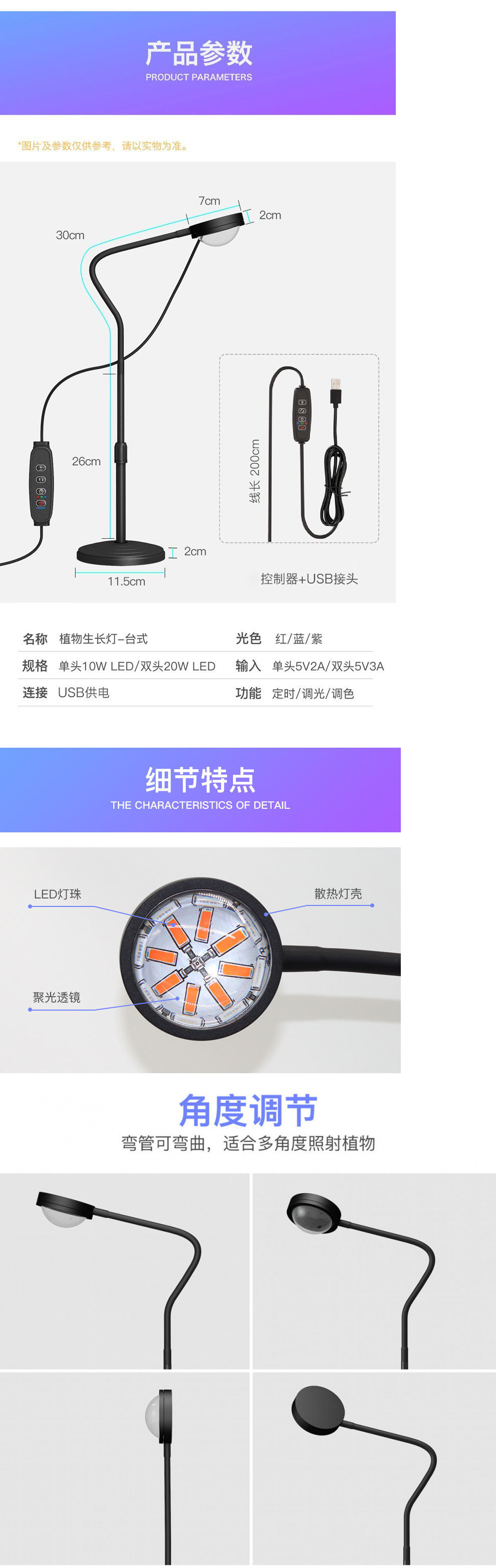 • 싱글 헤드 책상 램프 [풀 스펙트럼 10W + 타이밍 + 디밍]
