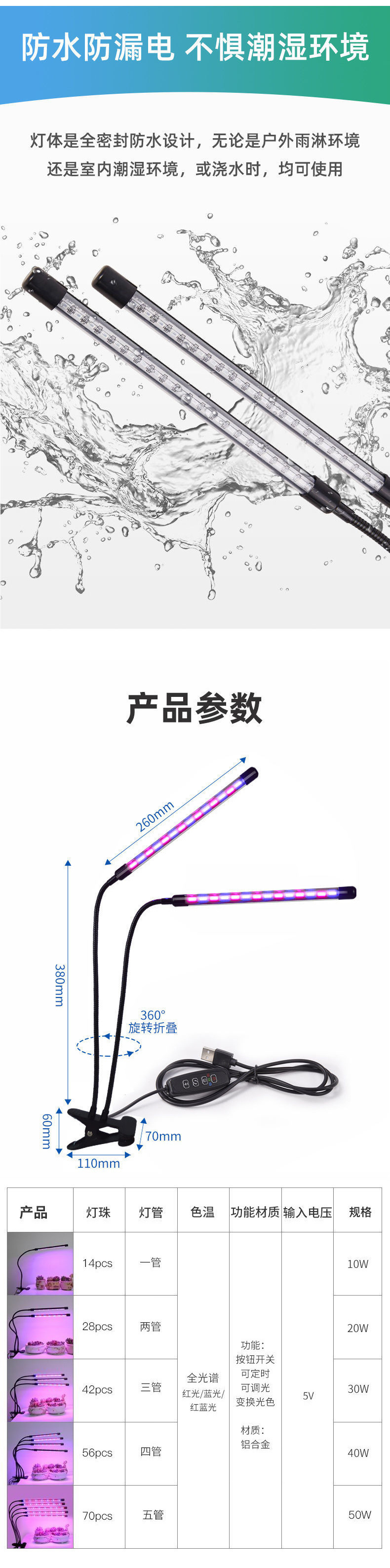 • 5개 헤드 [전체 스펙트럼 50W + 정기적으로 밝기 조절 가능]