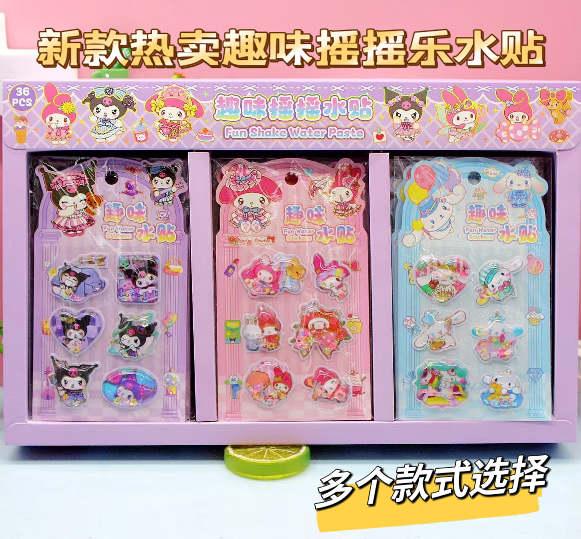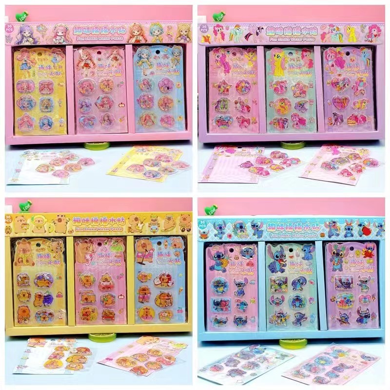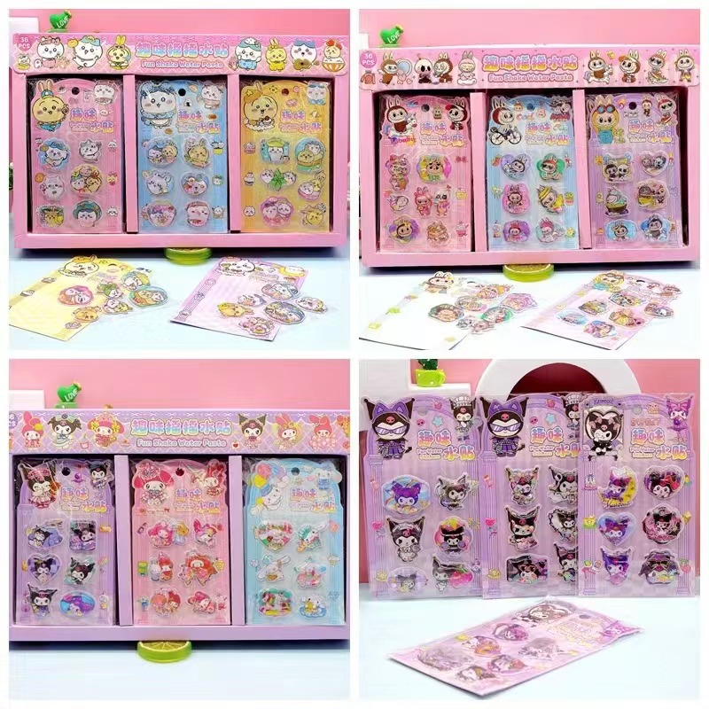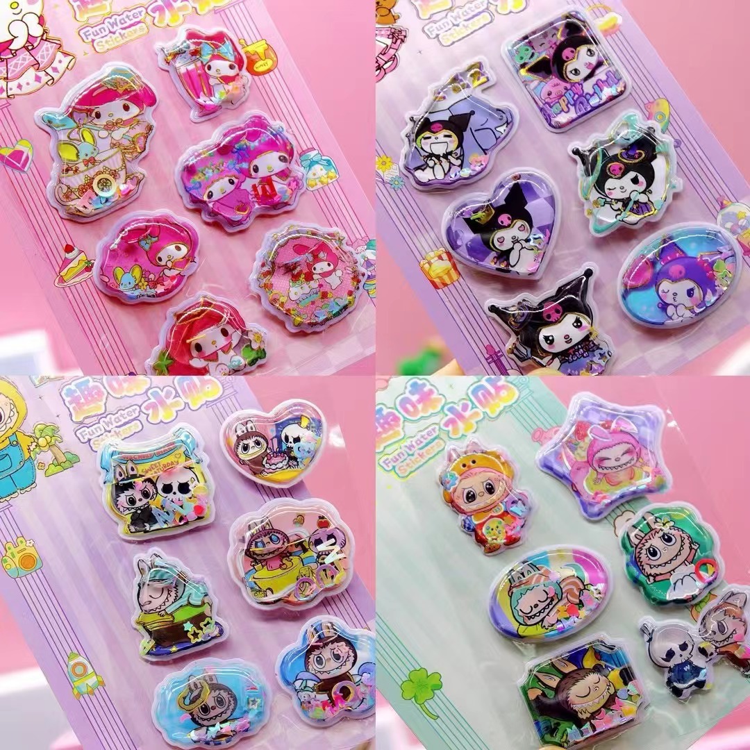 산리오 만화 3 차원 흔들리는 물 스티커 어린이 물 주입 흔들리는 음악 스티커 DIY 창조적 인 장식 스티커 손 스티커스토어 가기