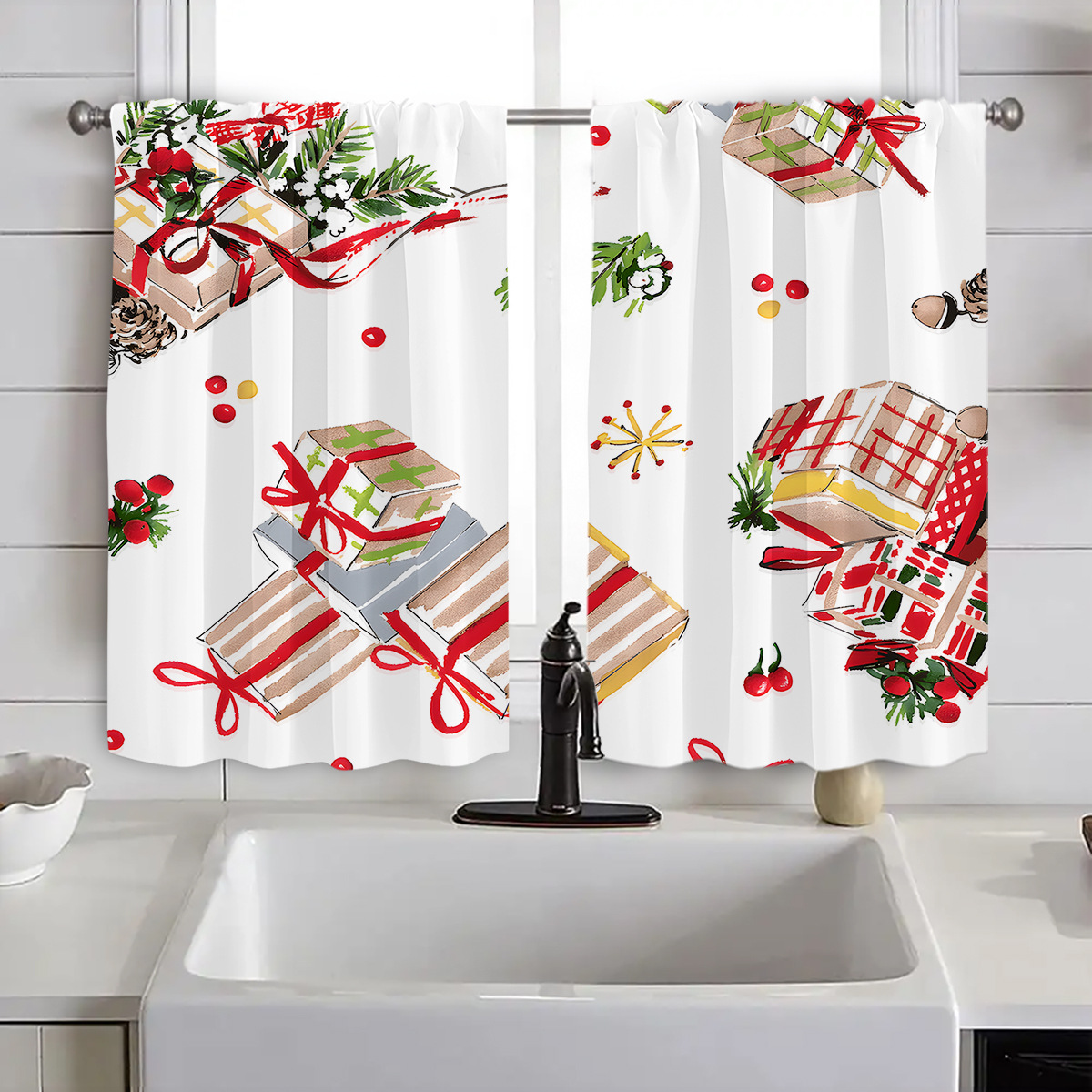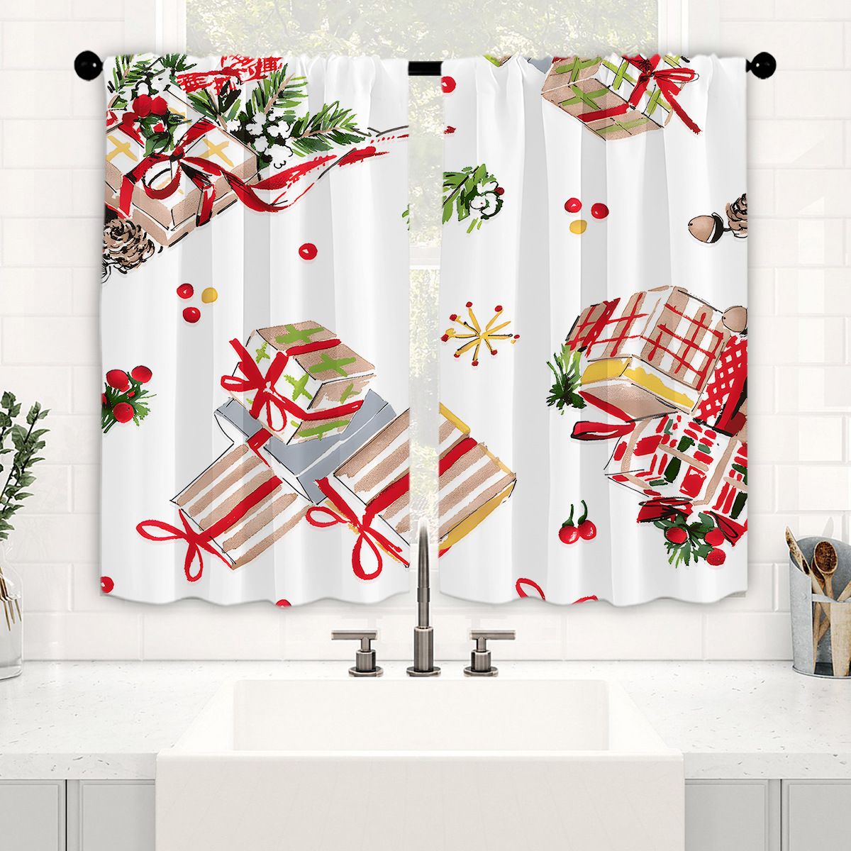 2pcs 주방 짧은 커튼 크리스마스 패턴 국경 뜨거운 판매 공장 직접 공급 3D 디지털 인쇄 방수 및 내유성스토어 가기