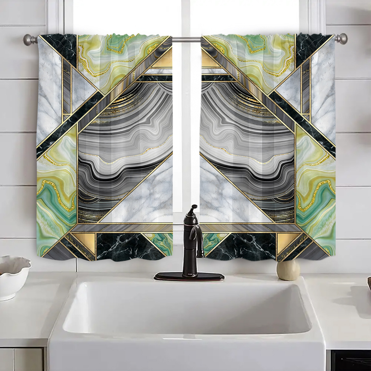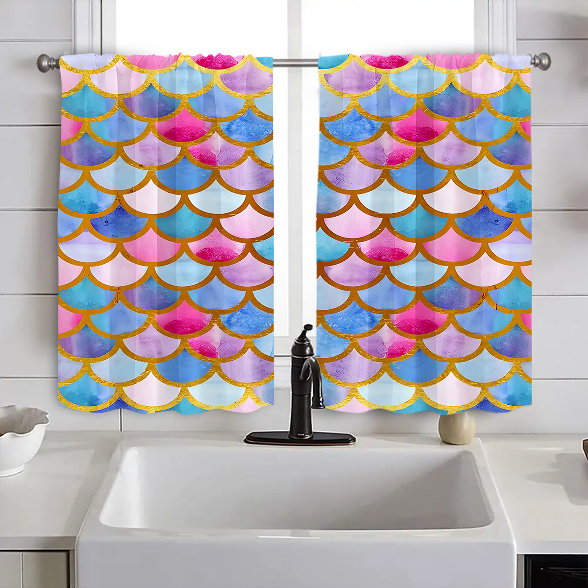2pcs 주방 짧은 커튼 크리스마스 패턴 국경 뜨거운 판매 공장 직접 공급 3D 디지털 인쇄 방수 및 내유성