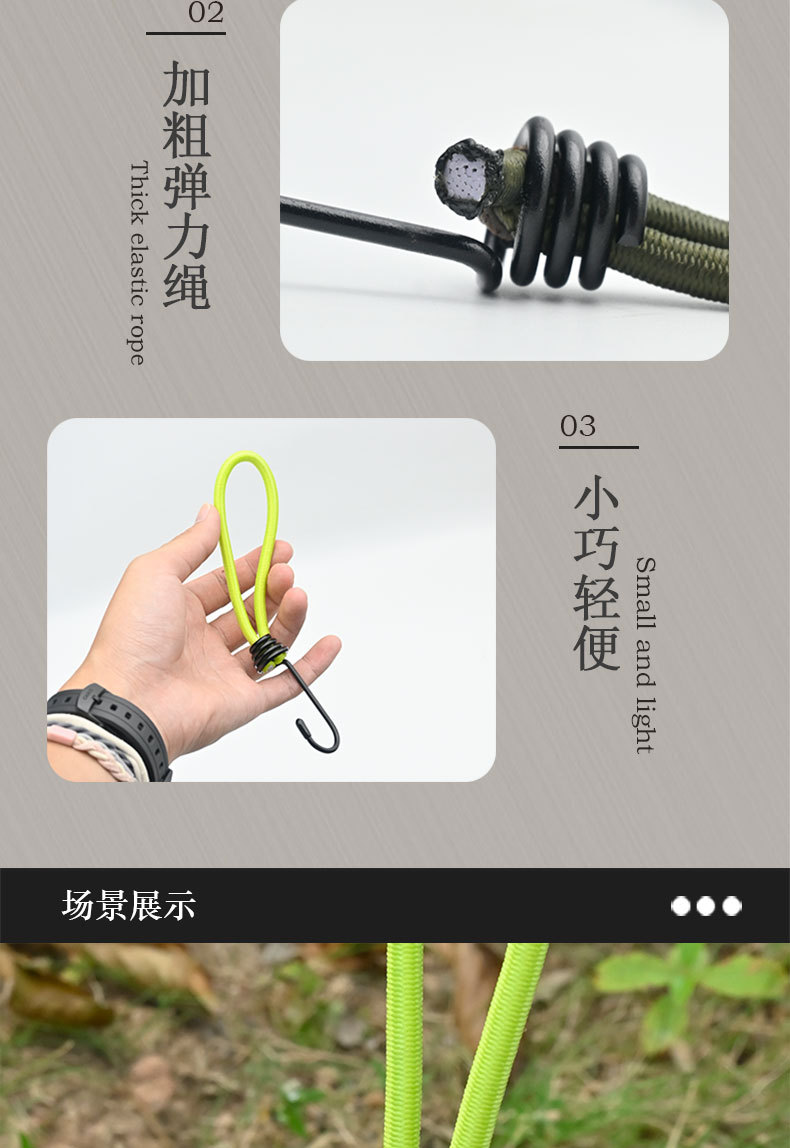 야외 텐트 탄성 로프 바인딩 로프 탄성 로프 금속 후크 캐노피 고정 버클 다기능 탄성 밴드
