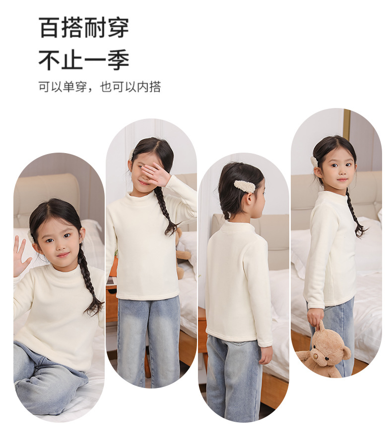 가을과 겨울 아동복 따뜻한 바닥 셔츠 소녀 벨벳 하이 칼라 기모 긴 소매 가을 의류 소년 싱글 의류스토어 가기