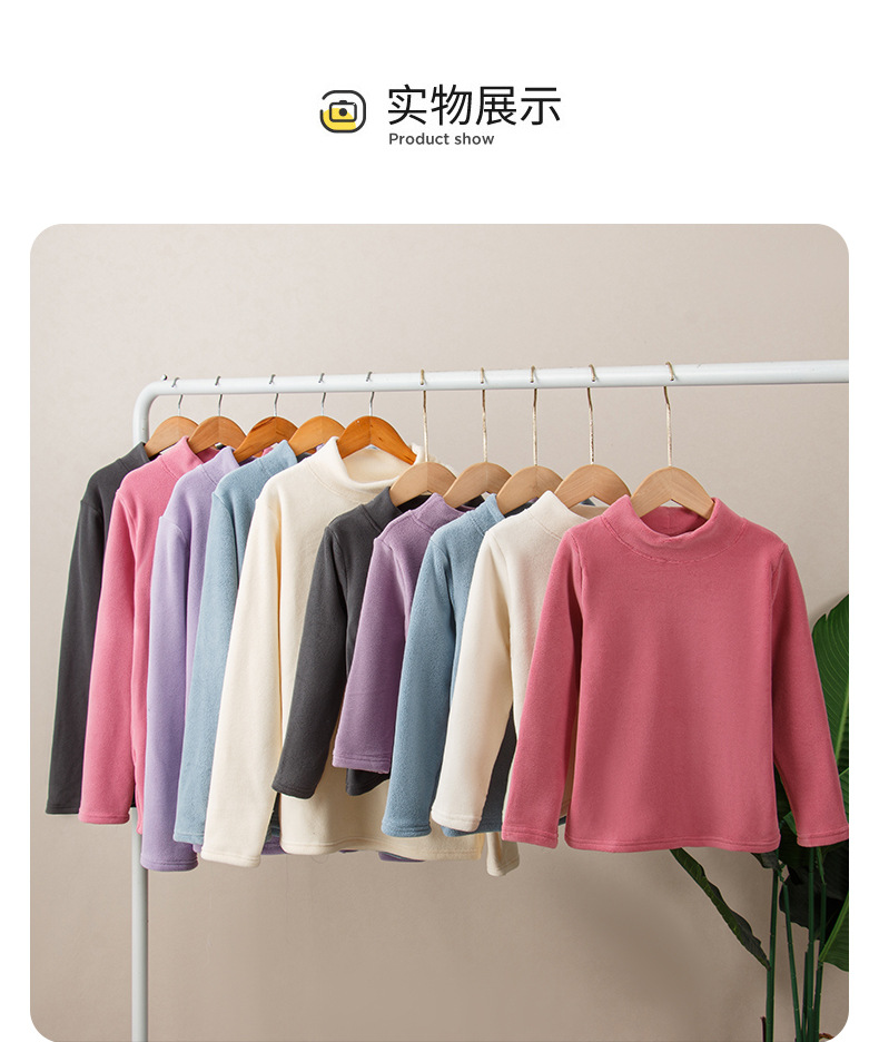 가을과 겨울 아동복 따뜻한 바닥 셔츠 소녀 벨벳 하이 칼라 기모 긴 소매 가을 의류 소년 싱글 의류
