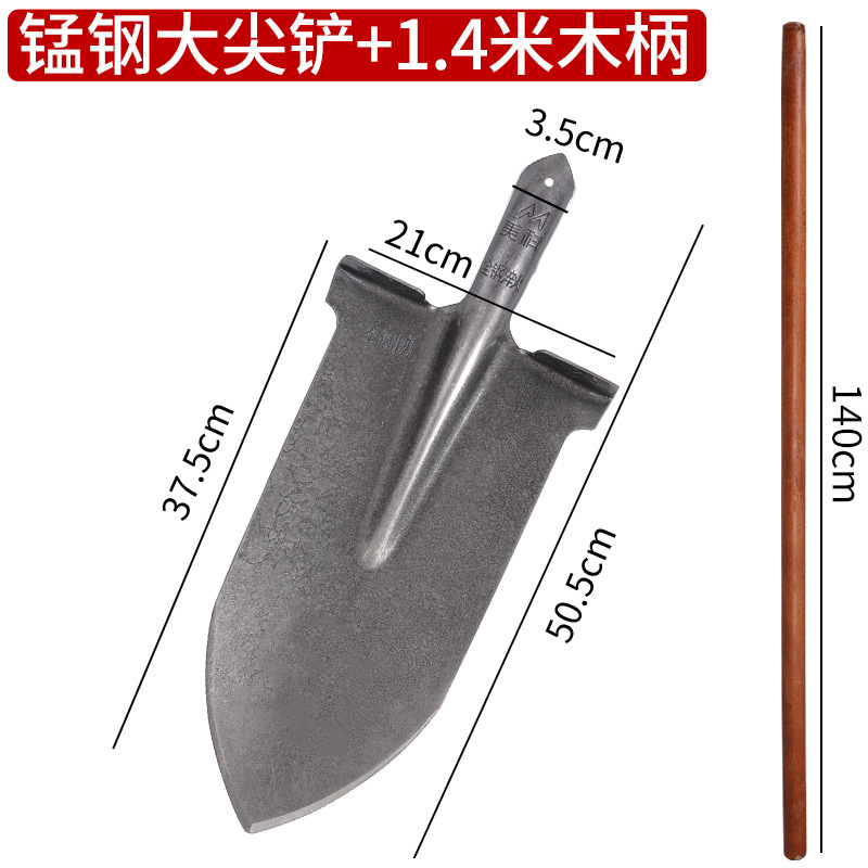 • 망간강 팁 삽 + 1.4m 단단한 나무 손잡이 [전체 길이 약 1.7m ]
