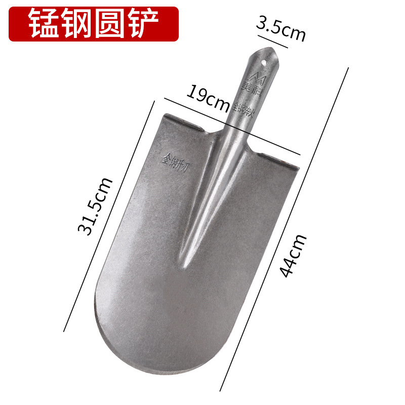 • 10년 보증] 두꺼운 모서리 원형 삽(나무 손잡이 없음)