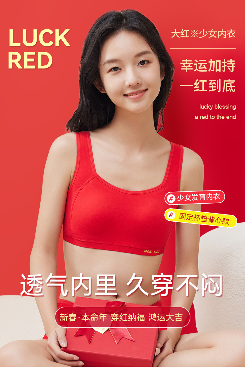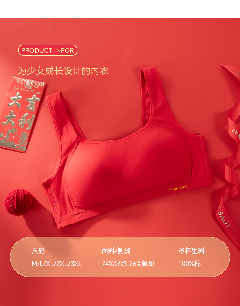 Anfeiya Girls Benmingnian 속옷 3 단계 고등학생 스트랩리스 새해 레드 년 뱀 소녀 조끼 소녀 브라스토어 가기