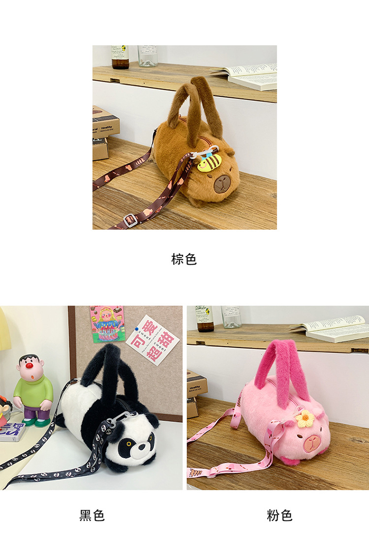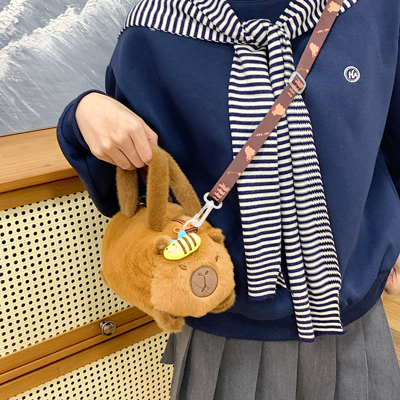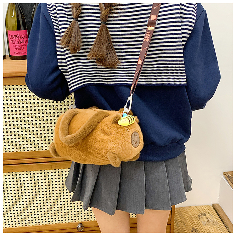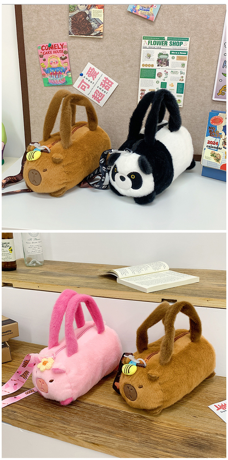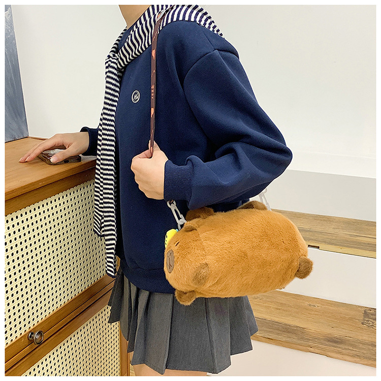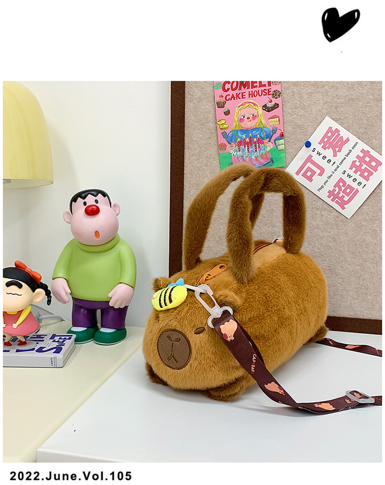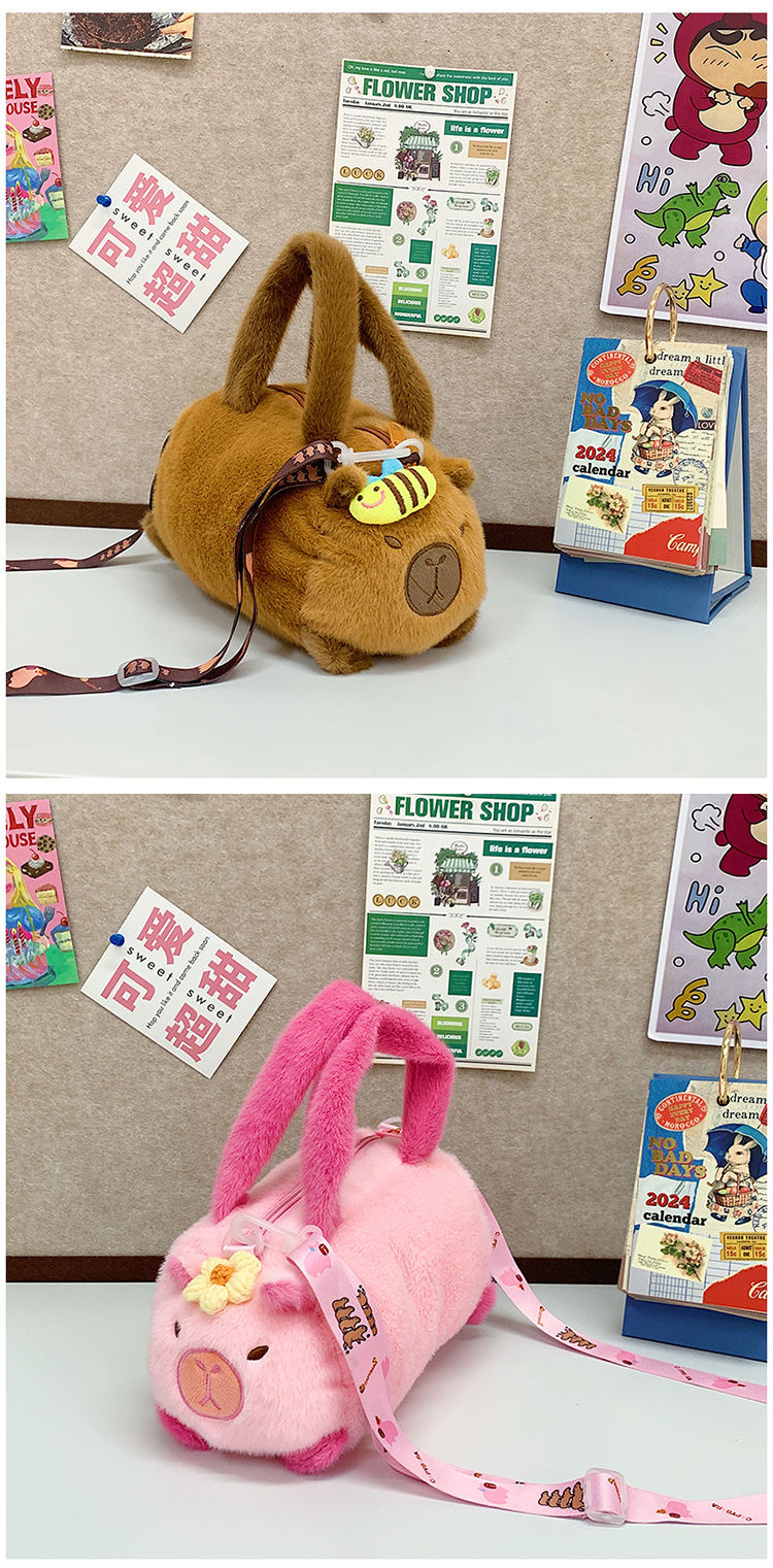 카피 발라 인형 봉제 만화 휴대용 카피 바라 가방 2024 새로운 어린이 패션 변화 어깨 크로스 바디 백