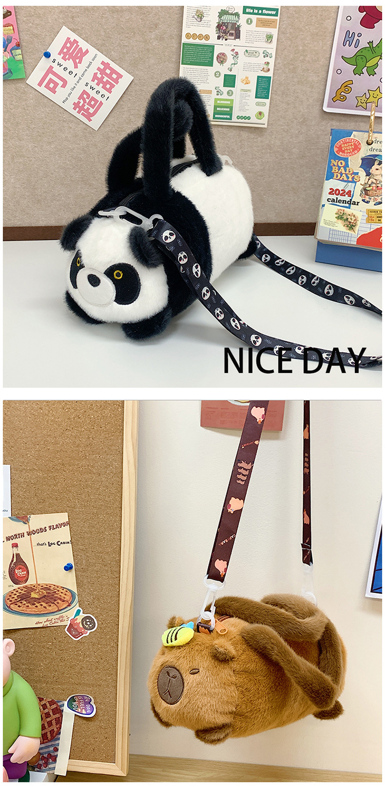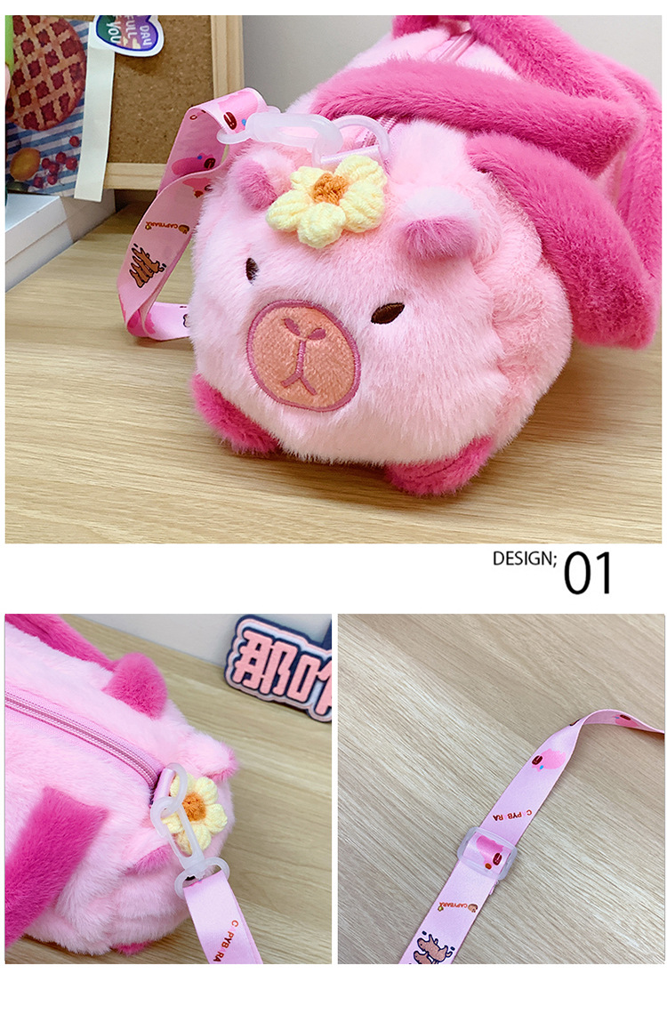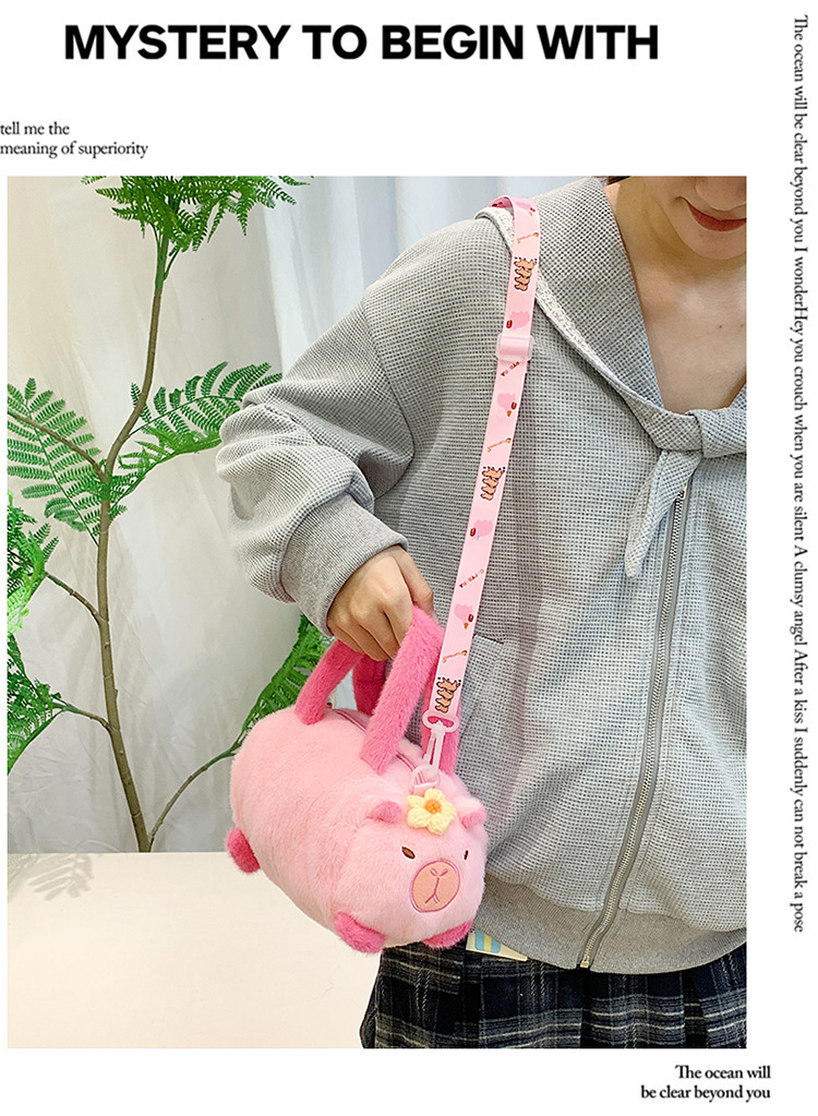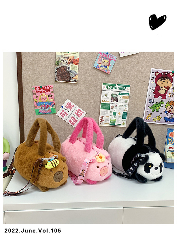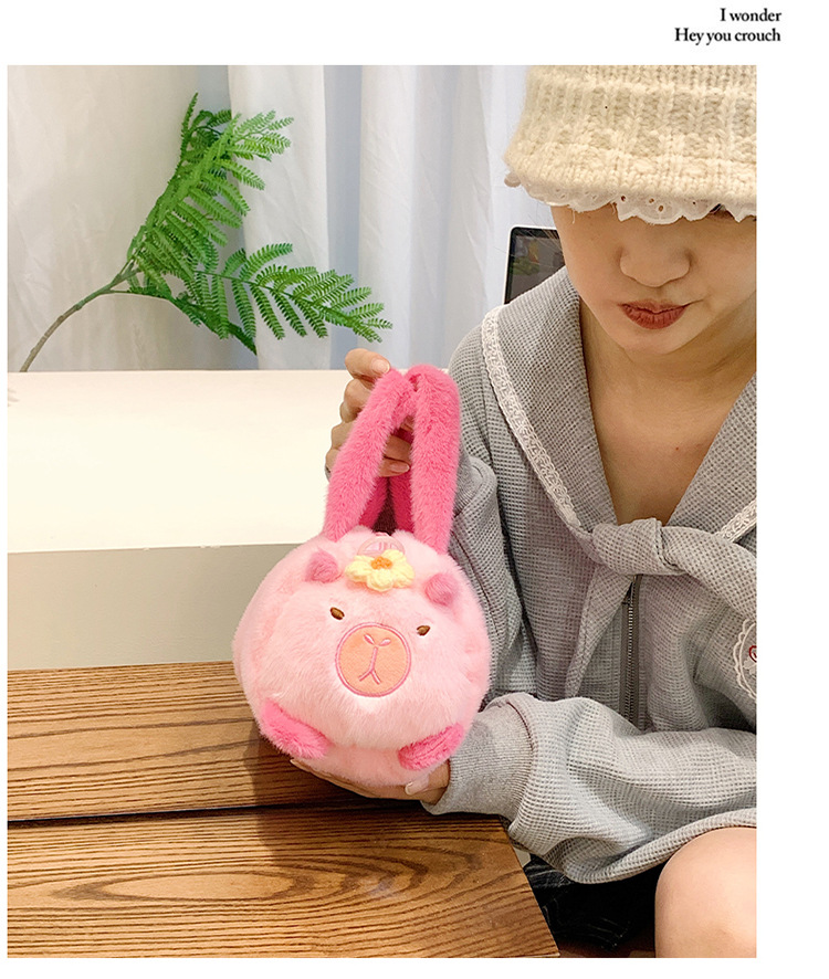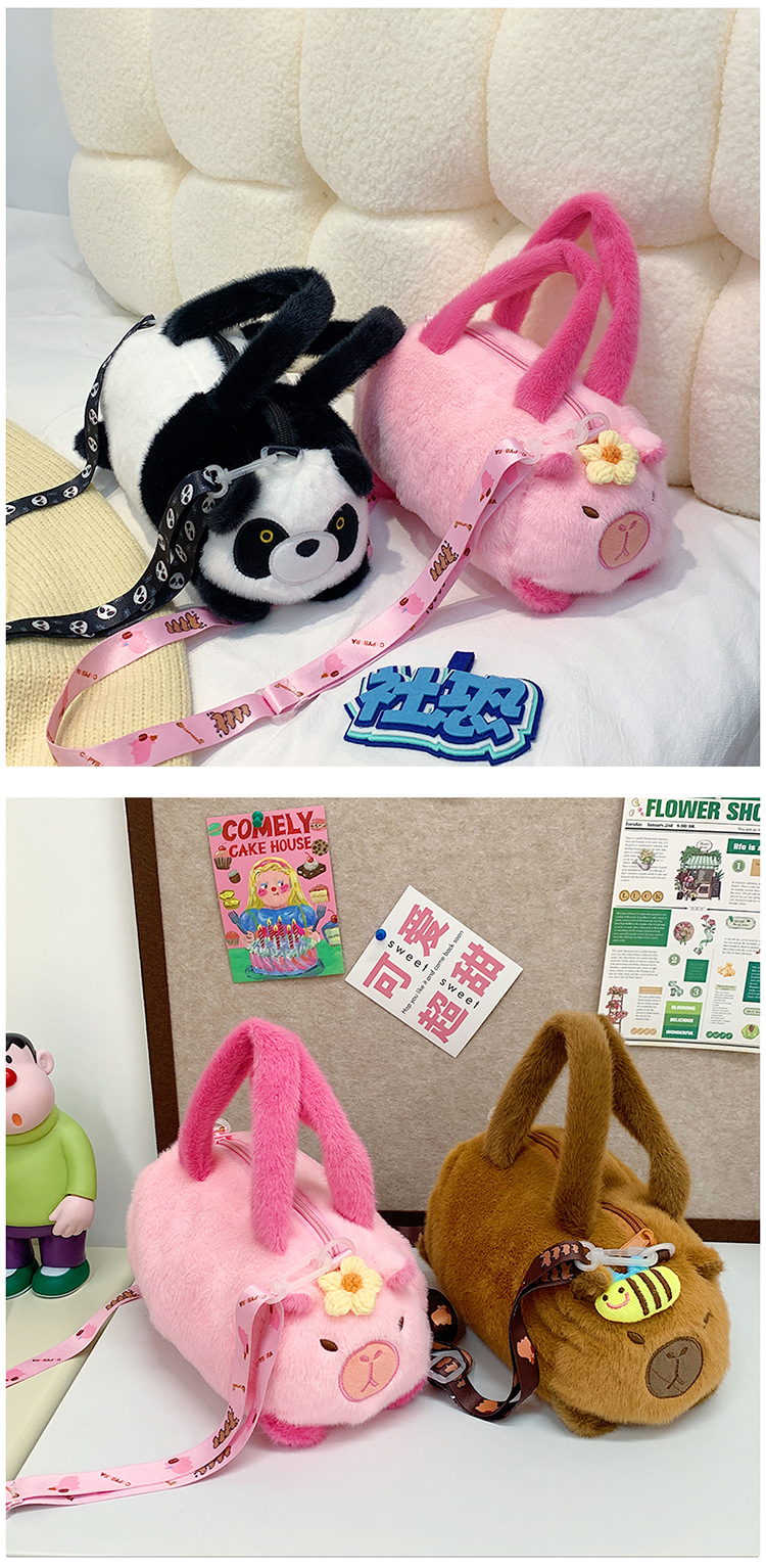 카피 발라 인형 봉제 만화 휴대용 카피 바라 가방 2024 새로운 어린이 패션 변화 어깨 크로스 바디 백