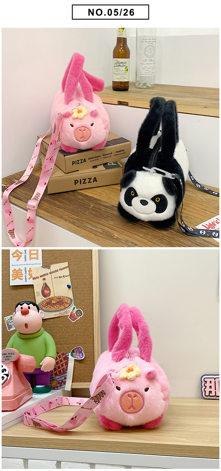 카피 발라 인형 봉제 만화 휴대용 카피 바라 가방 2024 새로운 어린이 패션 변화 어깨 크로스 바디 백스토어 가기
