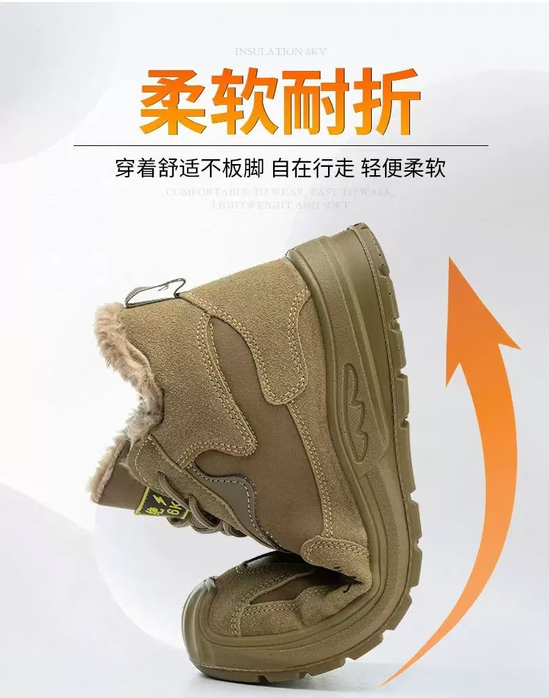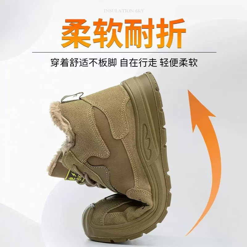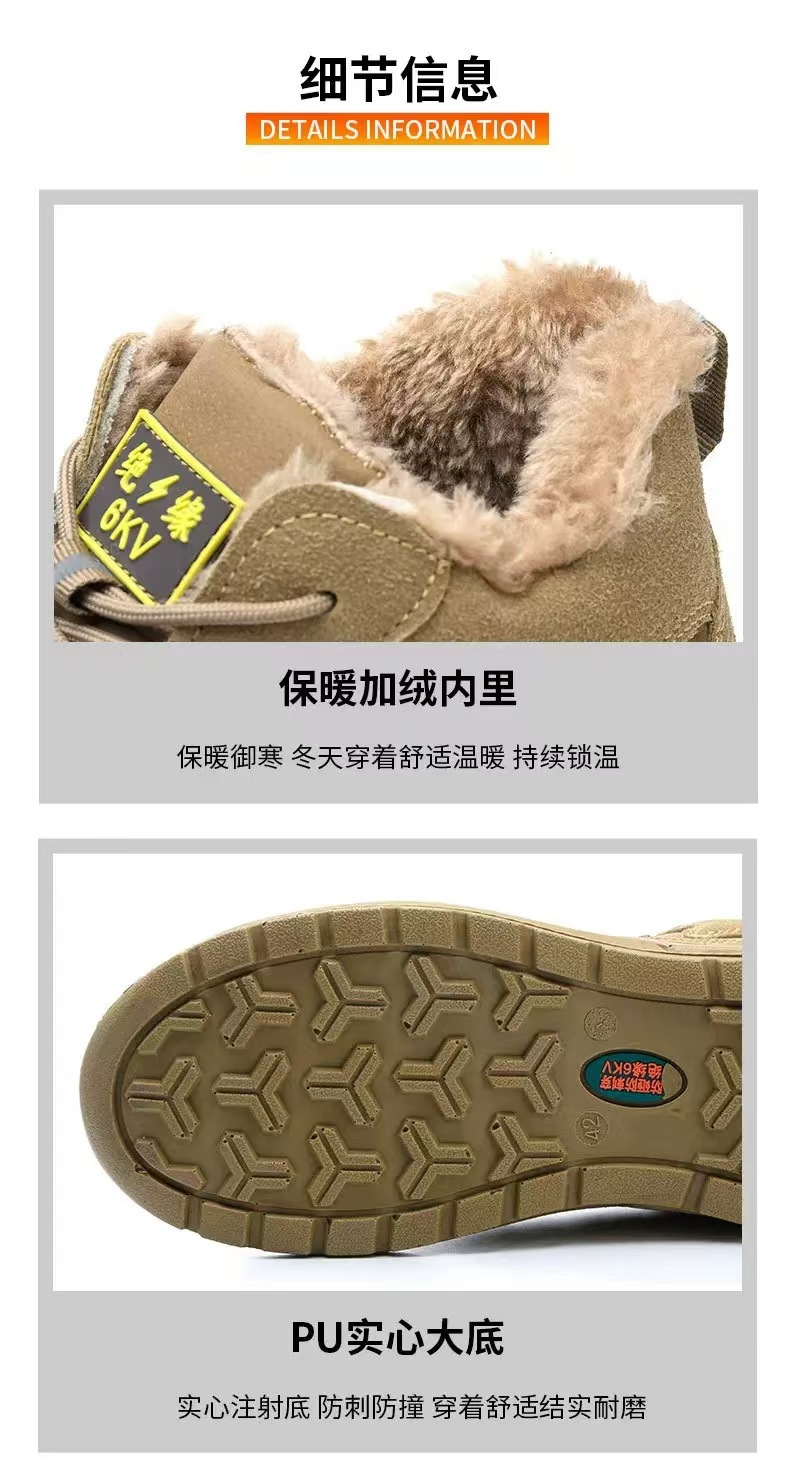 전기 절연 6KV 기모 노동 보호 신발 내마모성 고무 단독 노동 보호 신발 스매싱 방지 및 안티 피어싱 하이 탑 보호 남성 신발