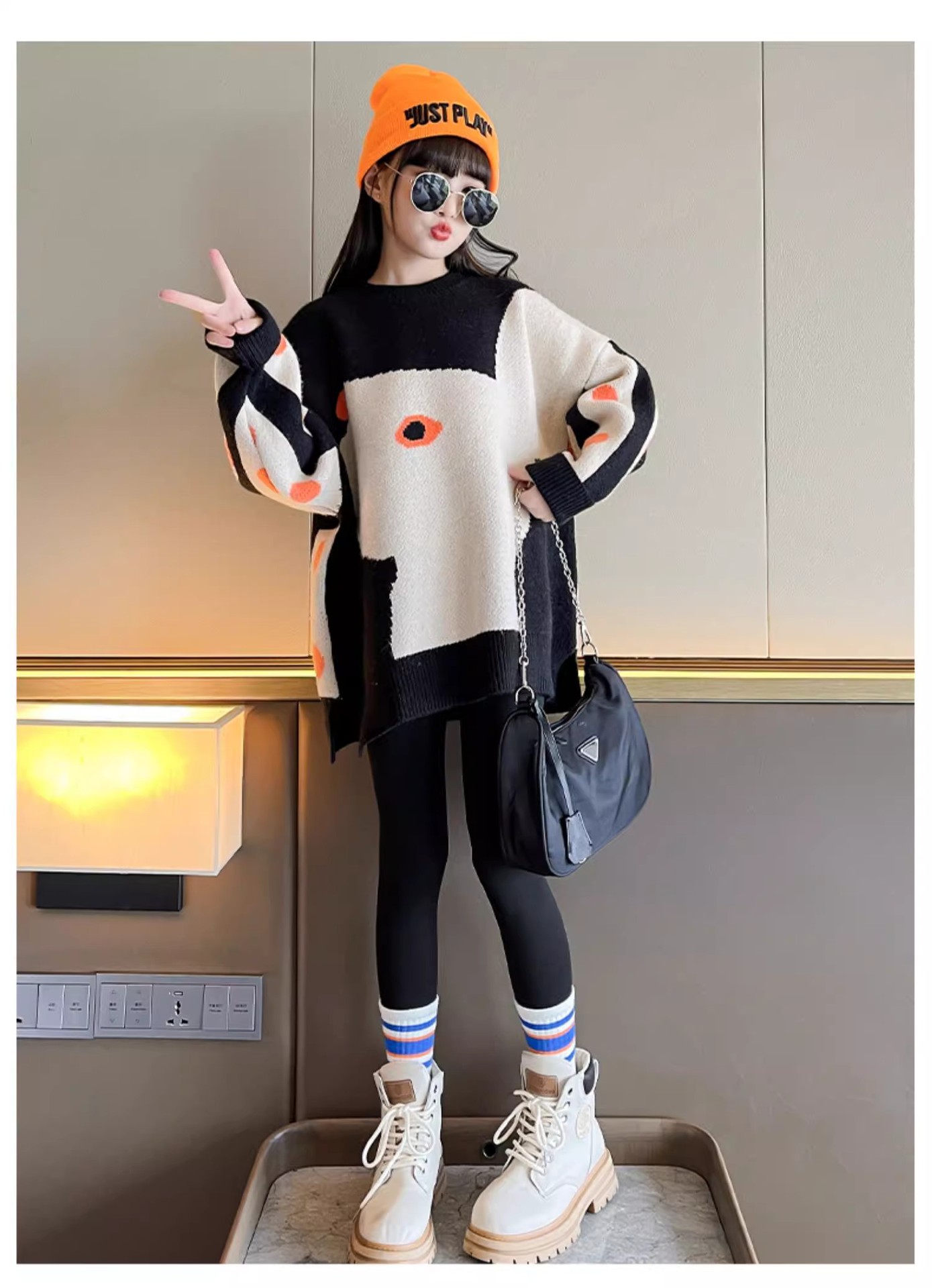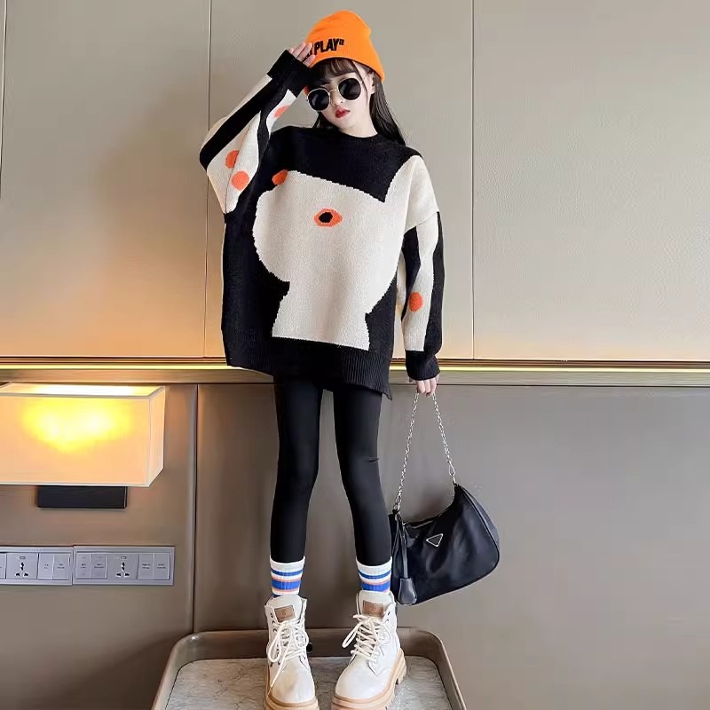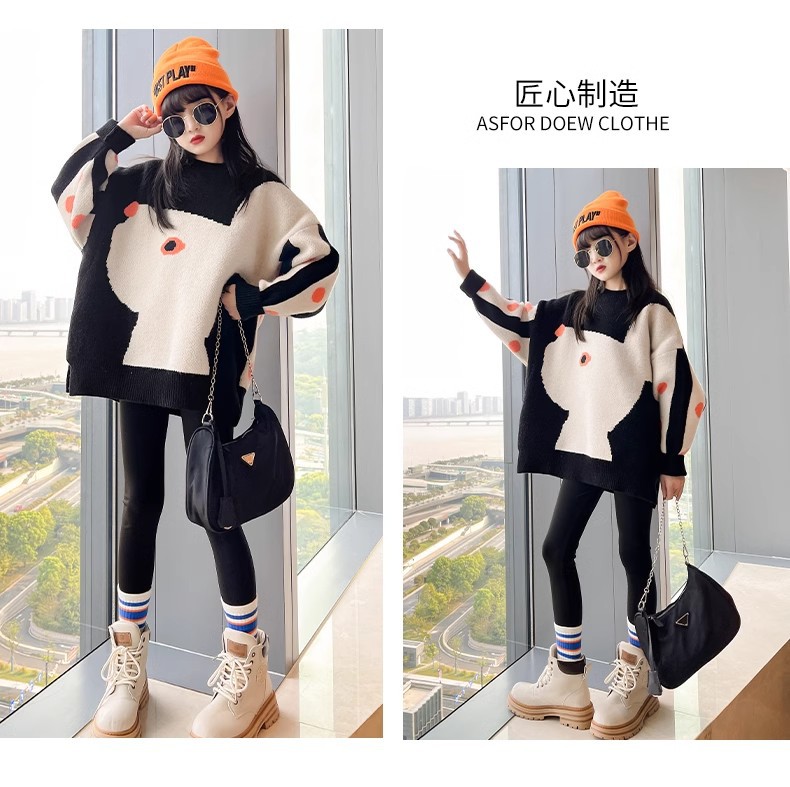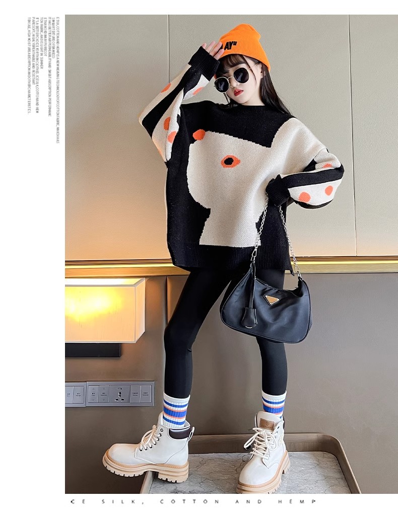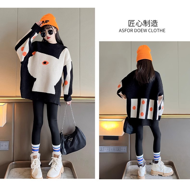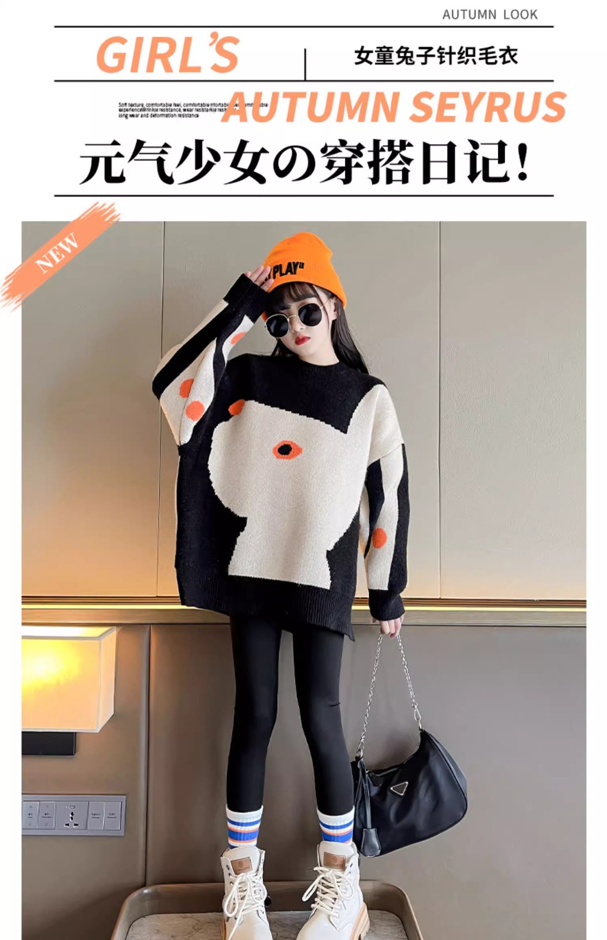 여자 스웨터 가을과 겨울 패션 스타일리시 베이스 셔츠 어린이 2024 겨울 새로운 한국 라운드 넥 스웨터 트렌디