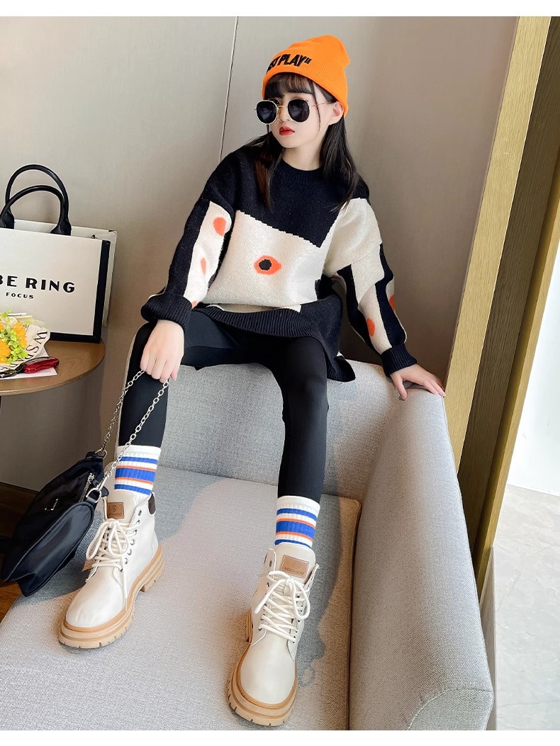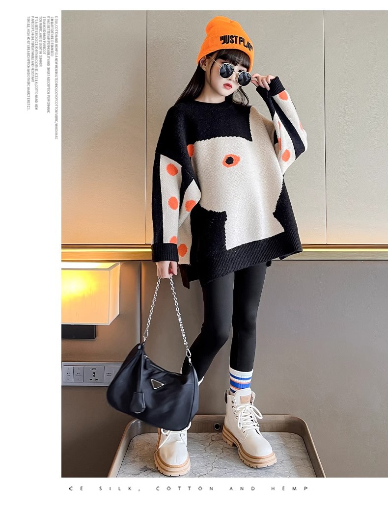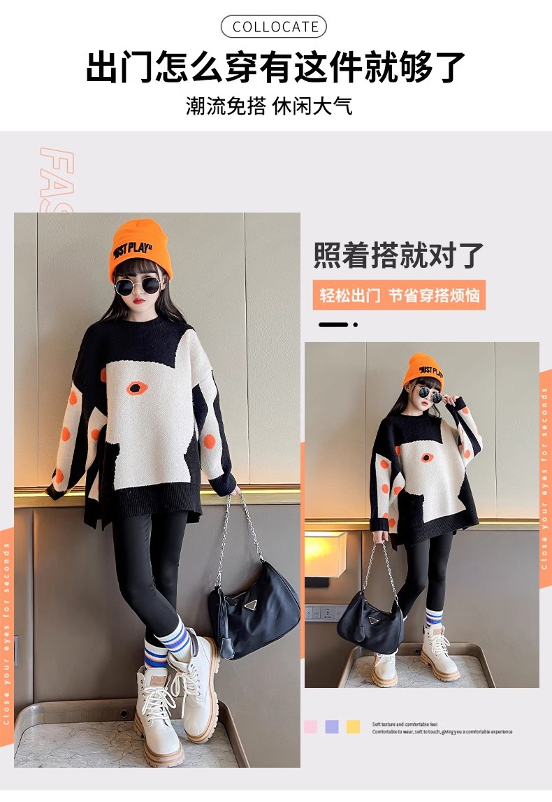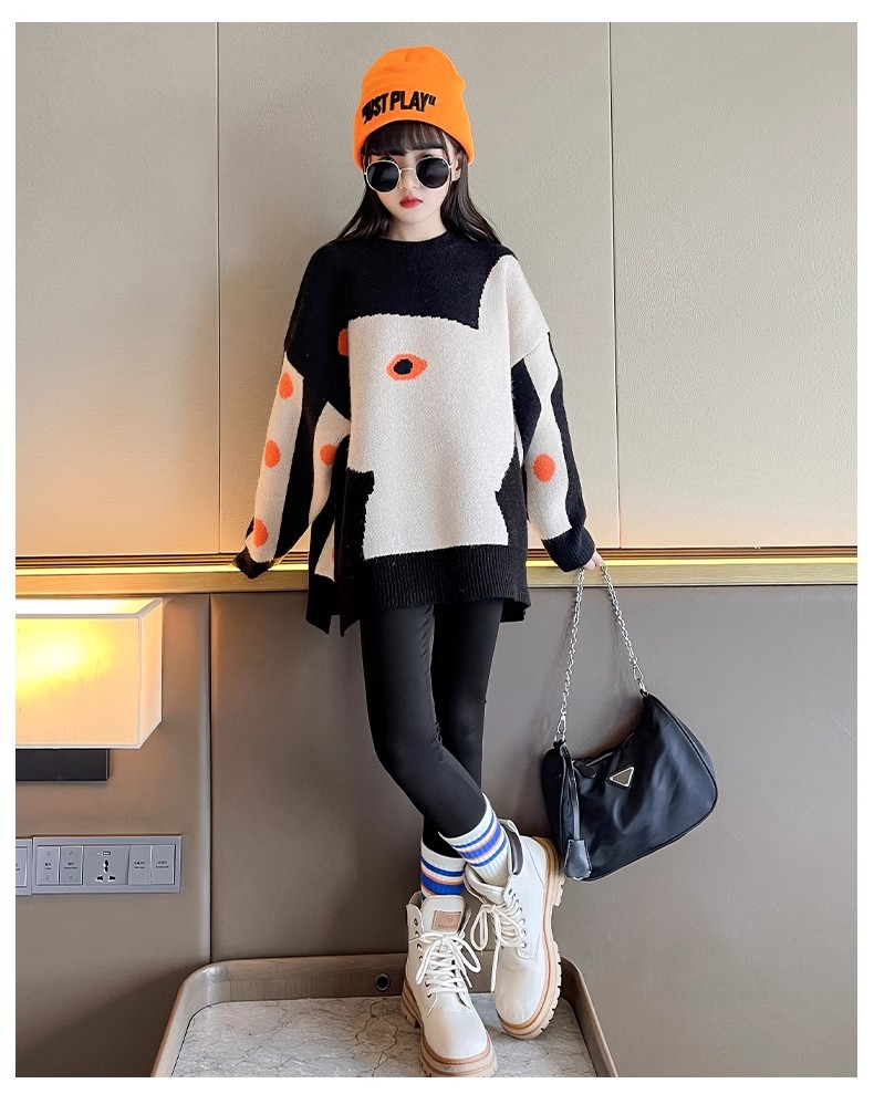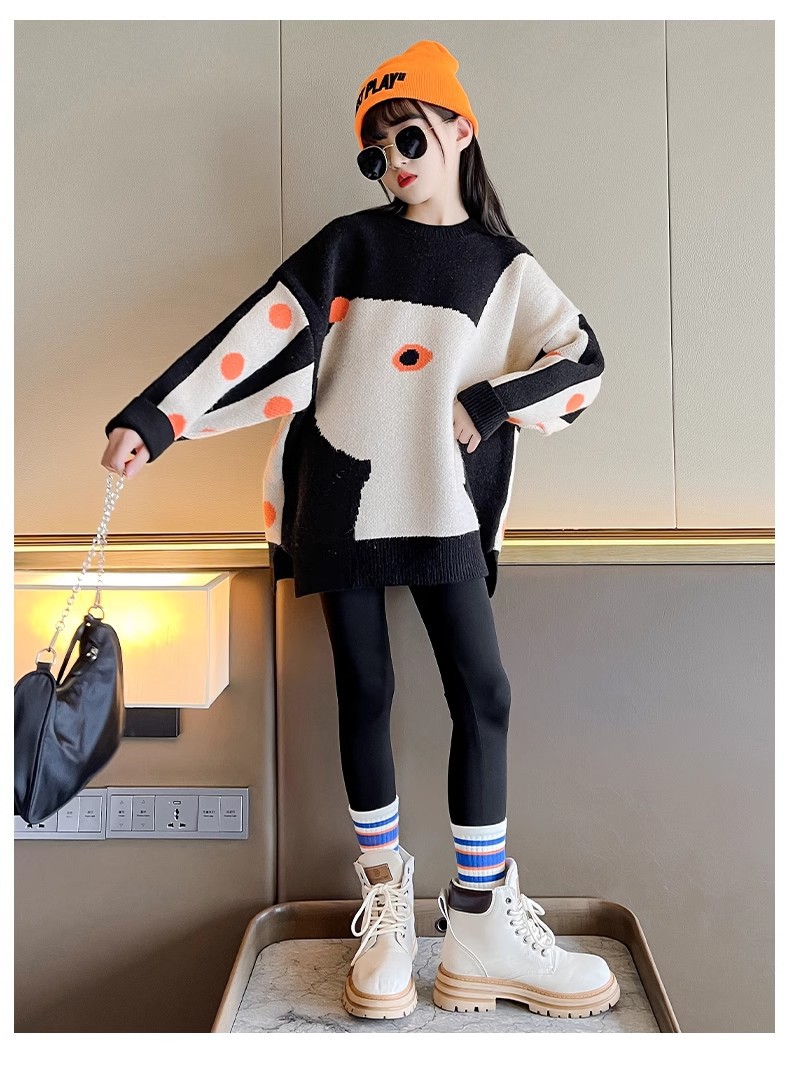 여자 스웨터 가을과 겨울 패션 스타일리시 베이스 셔츠 어린이 2024 겨울 새로운 한국 라운드 넥 스웨터 트렌디
